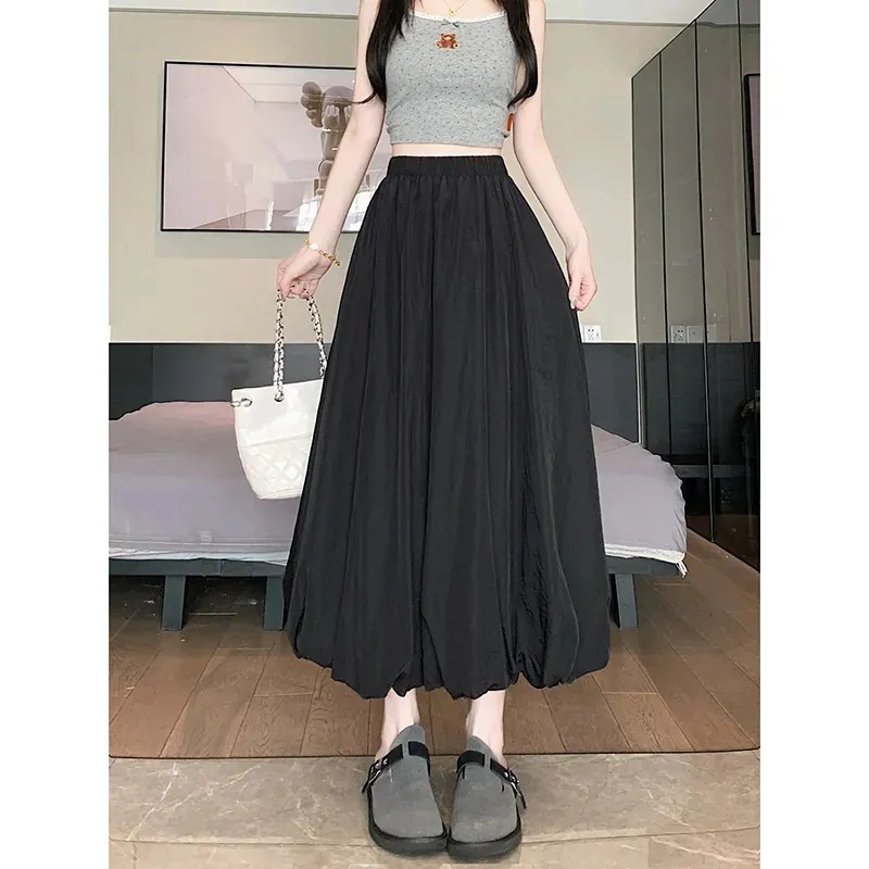 緊急SALE!2枚購入で2OO円OFF!プリーツ 可愛い きれいめ ボトムス シンプル ロングスカート 秋コーデ フレアスカート 大きいサイズ 黒 レディース ロング バルーン ミディアムスカート ス