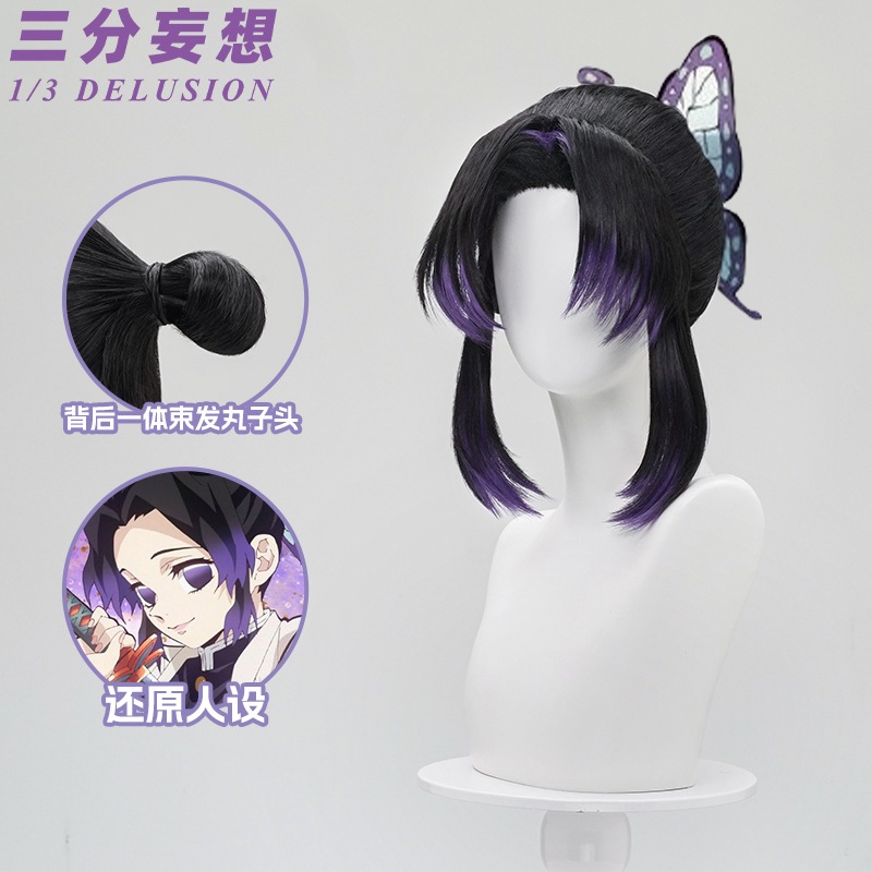 三分妄想 鬼滅の刃 cos 胡蝶しのぶ(蟲柱)/ 栗花落カナヲ ウィッグ マルチレイヤーグラデーション