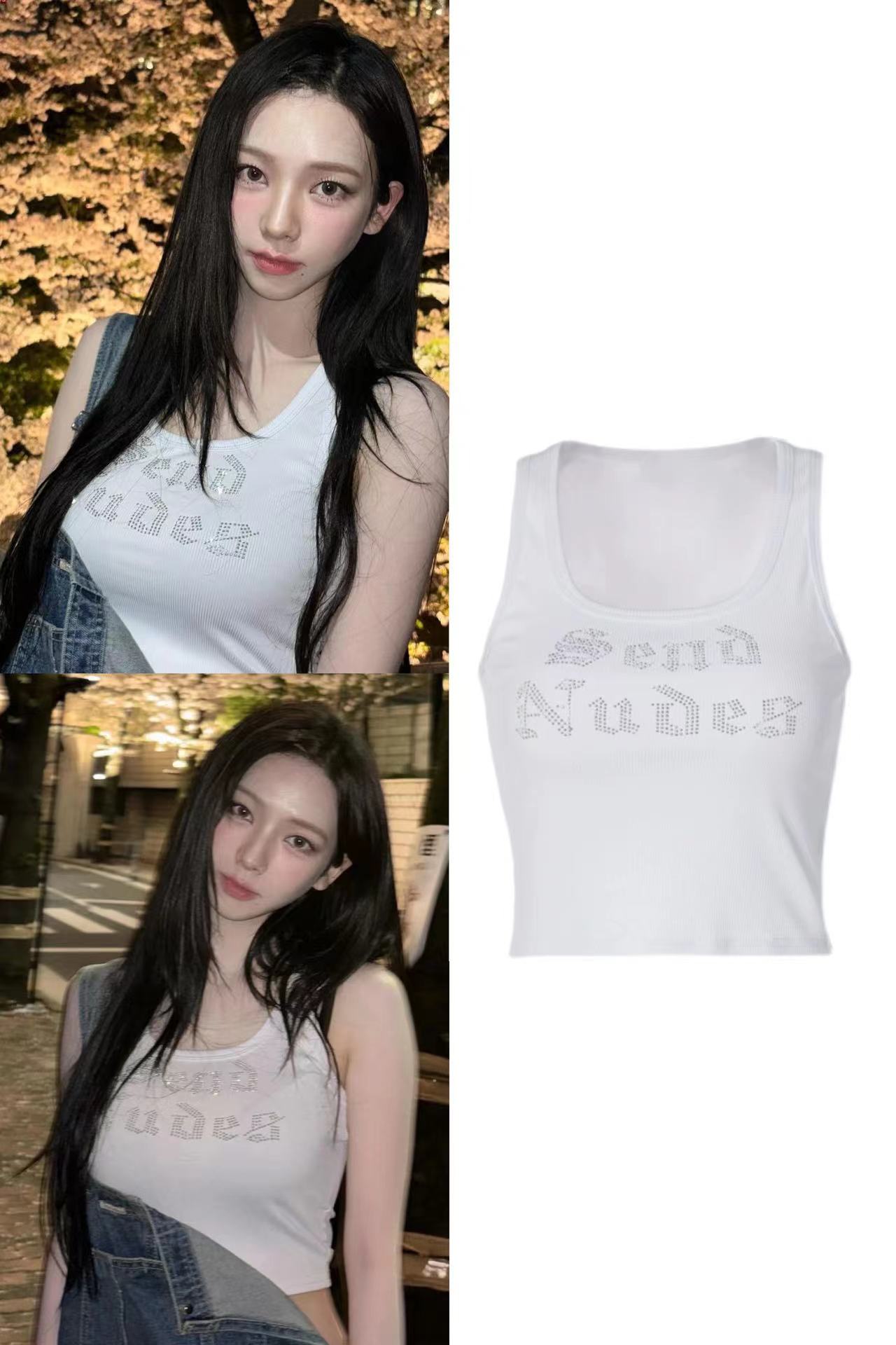 ジゼルaespa Karina Giselle Winteingning Karina 同風ショートベスト ホットダイヤモンド 綿 サスペンダー スリムボトム 夏