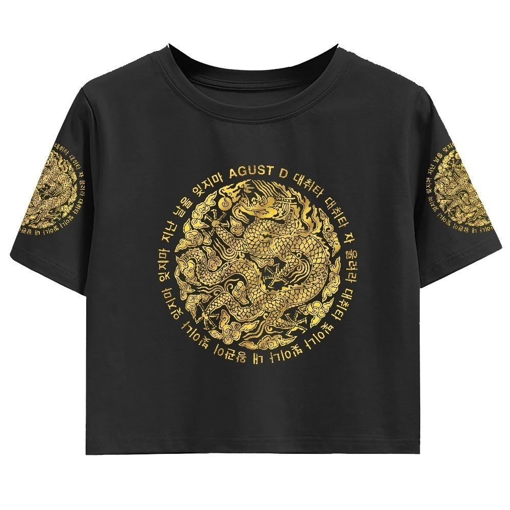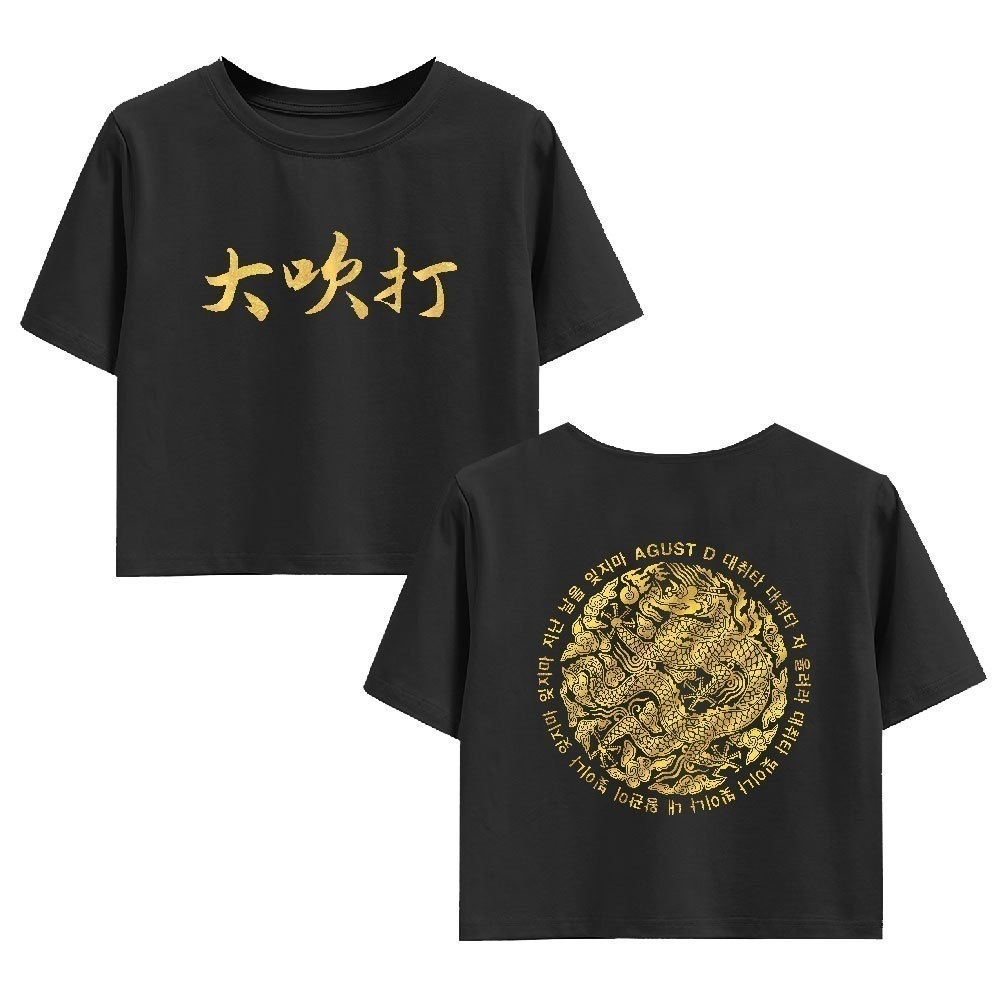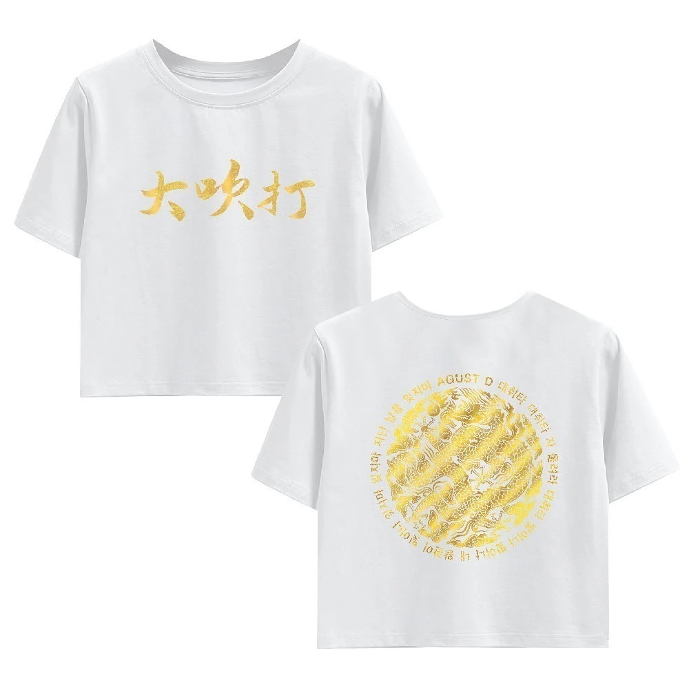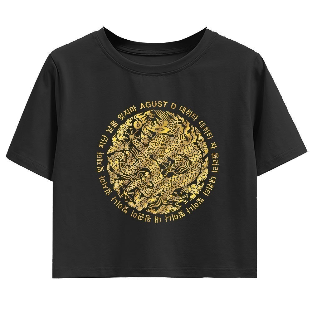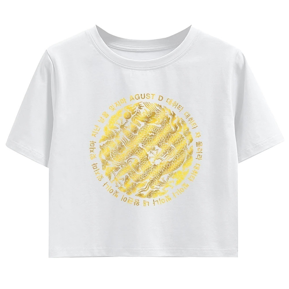 防弾 シュガミンユンギのソロパフォーマンス歌唱衣装 芸術国民風へそ出し半袖TシャツショートTシャツ