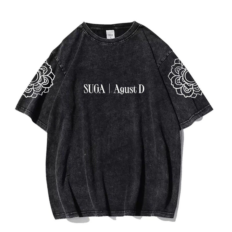 防弾 シュガミンユンギのソロ歌唱衣装Tシャツハイストリートトレンドウォッシュ半袖