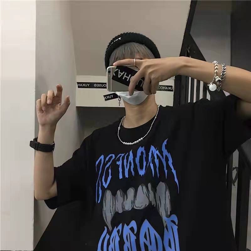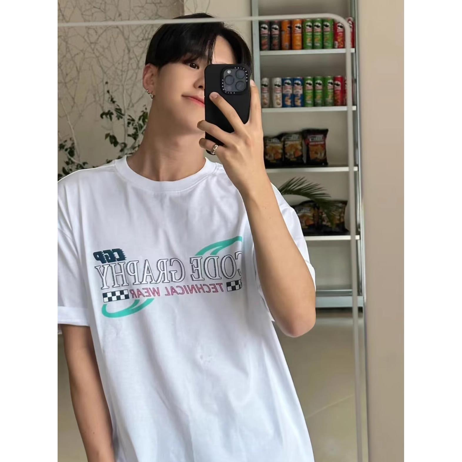 韓国スター同型seventeenのquanShunrongLetterShort-sleevedTシャツの夏のルーズトップ服流-白 r n1002ブラック-白コットン