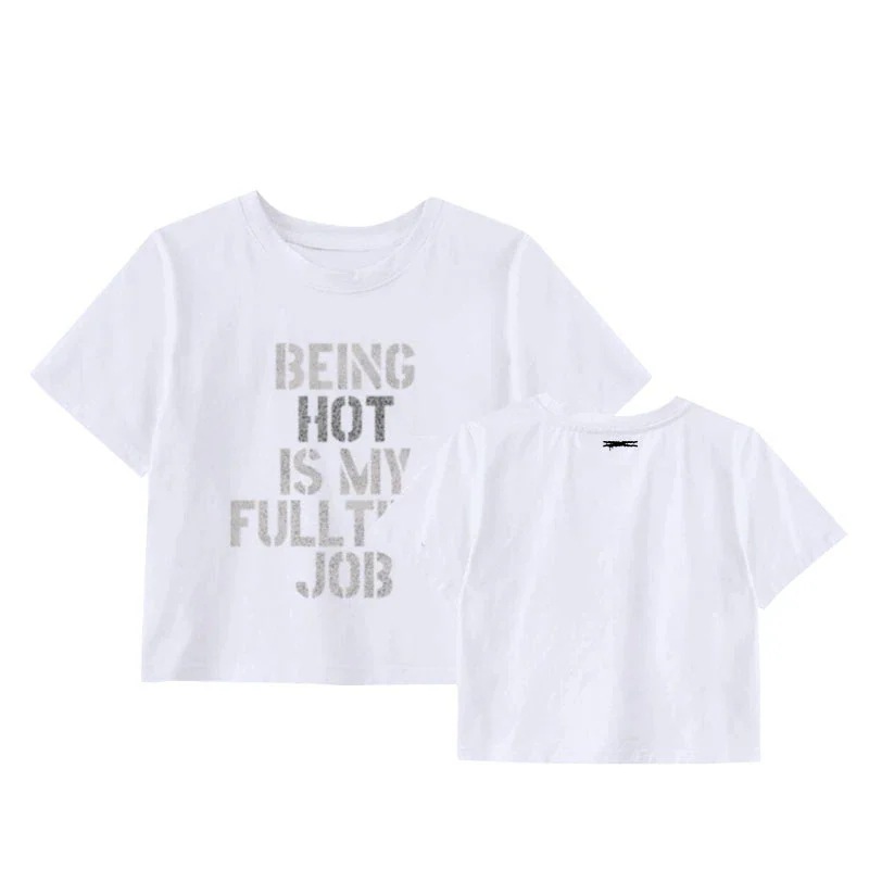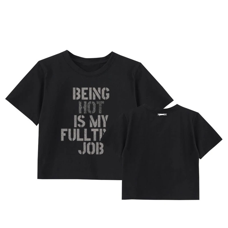 韓国スター同型Le Sserafim Album Hot Crouch-exposed Clothes Pure Cotton Loose All-match Round Neck Simple Sh