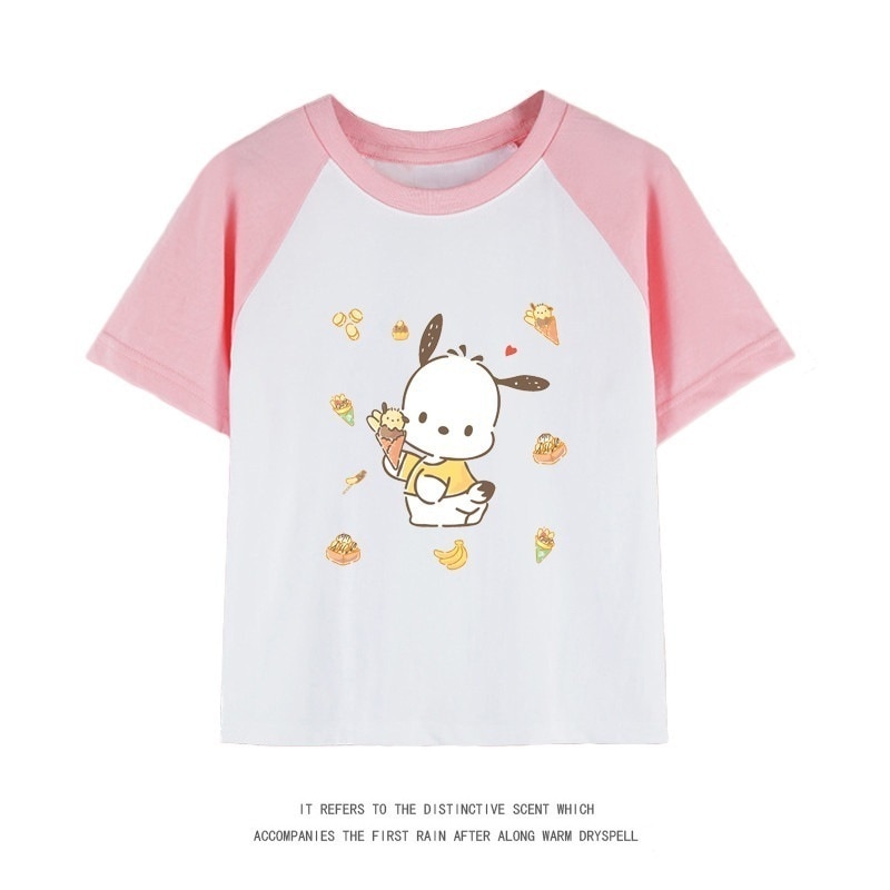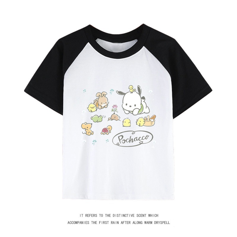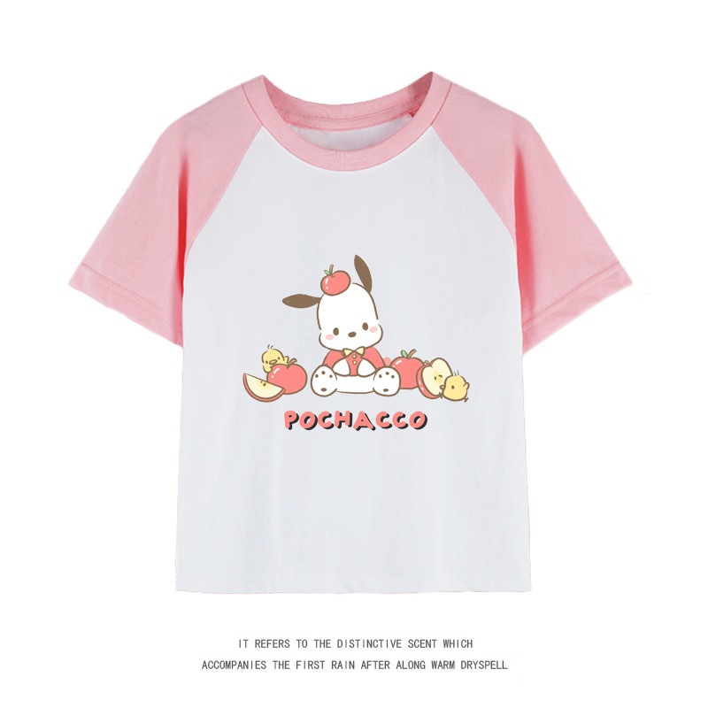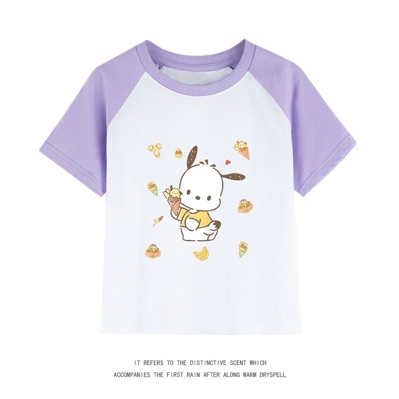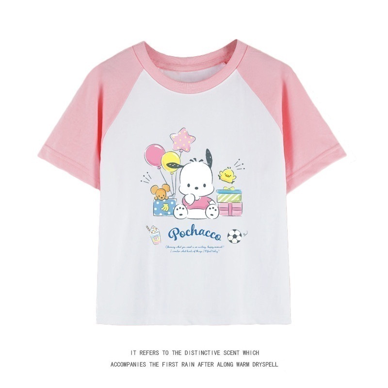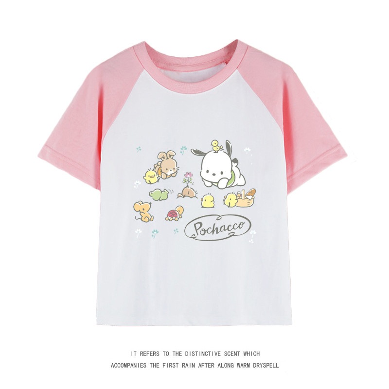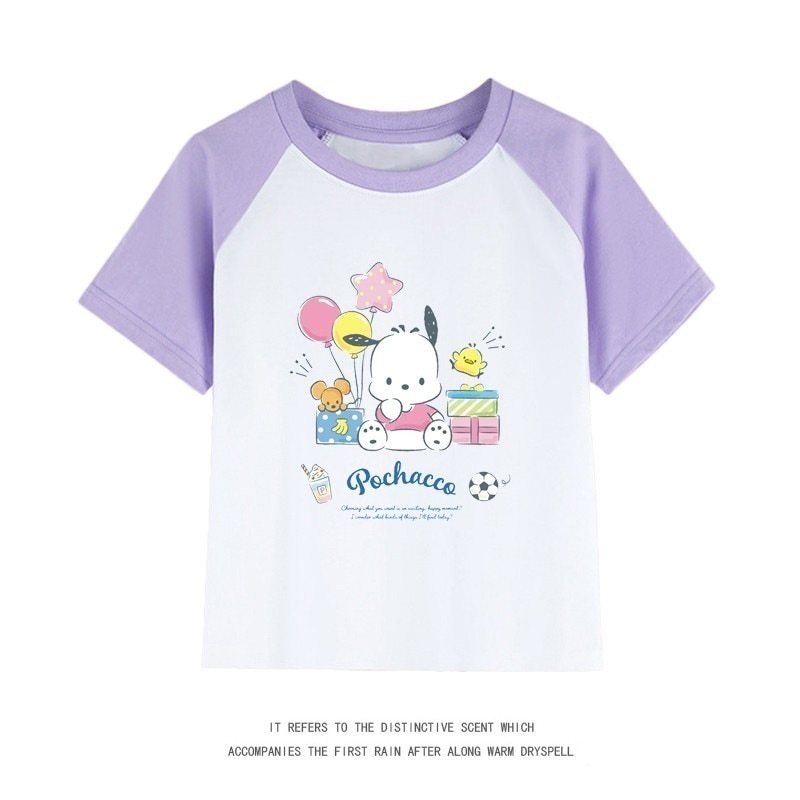 親子服ポチャッコ半袖tシャツレディースパチャドッグ半袖男の子女の子服純綿子供用中大シャツ丸首トップス女の子ファッションTシャツブラウス