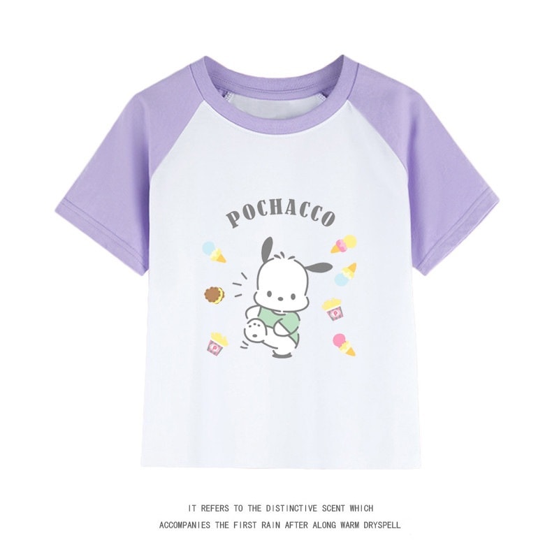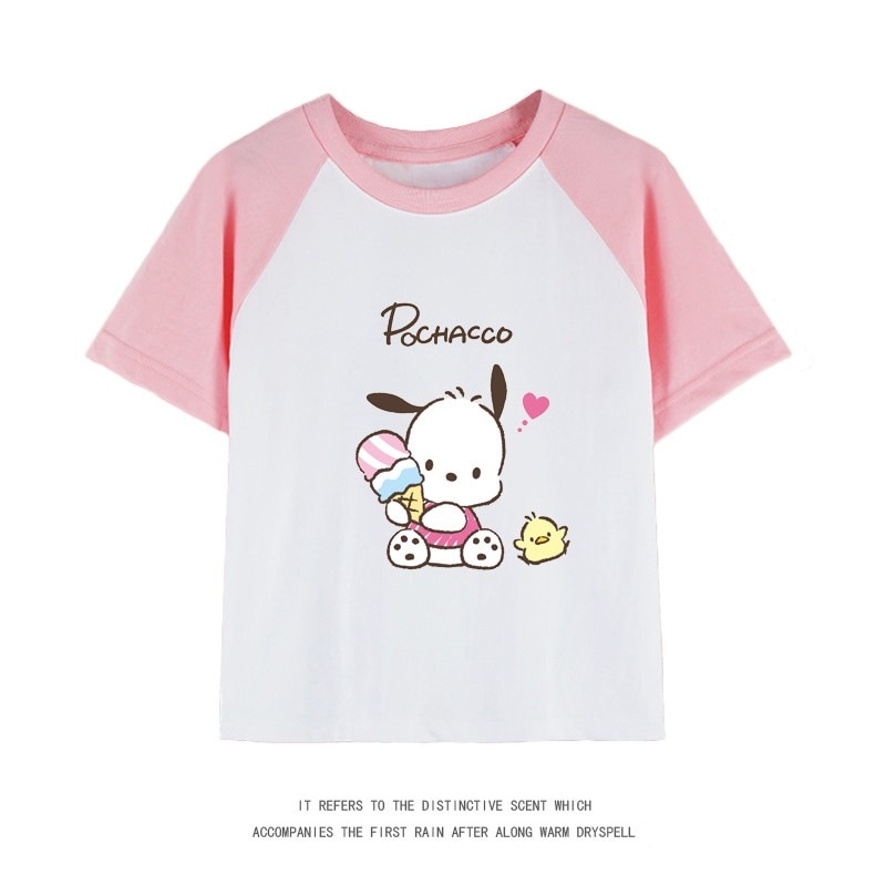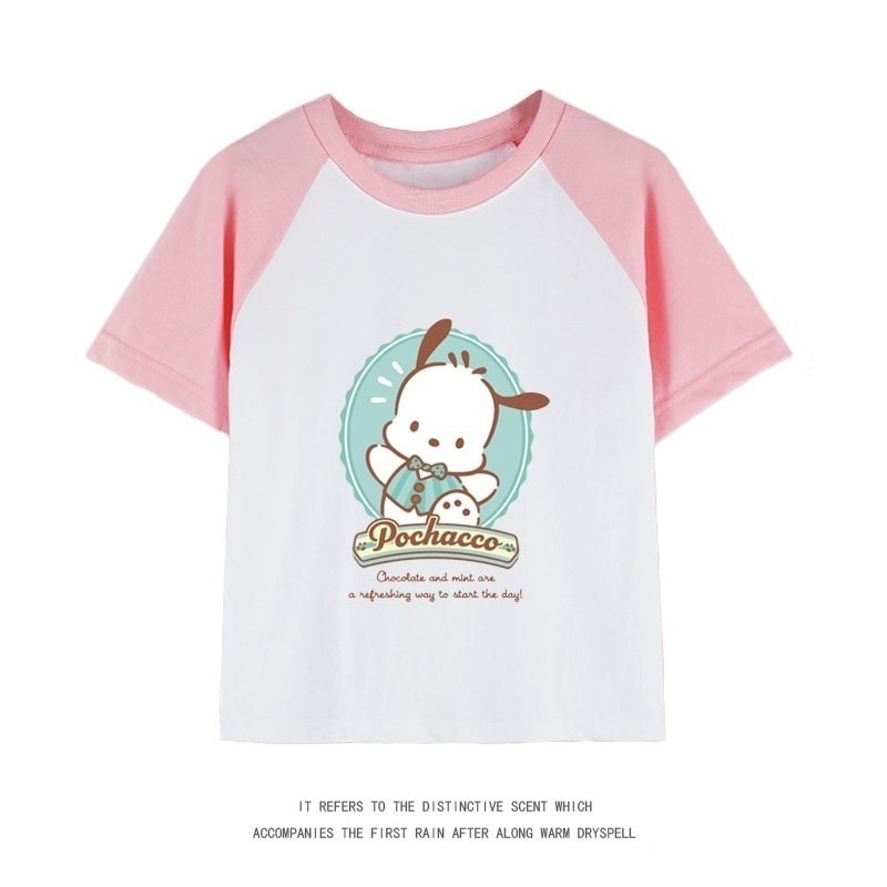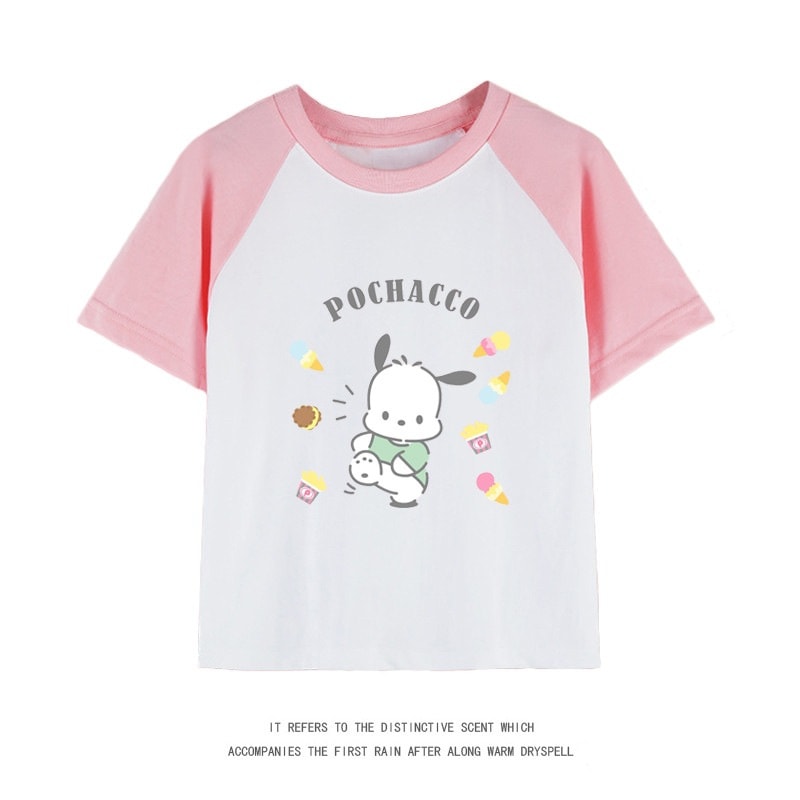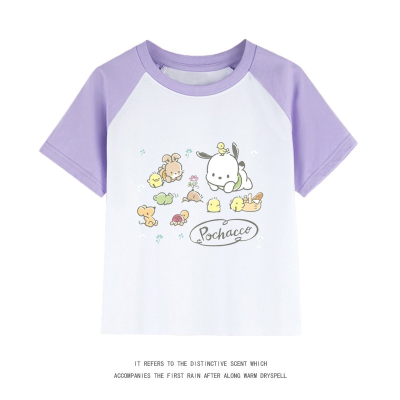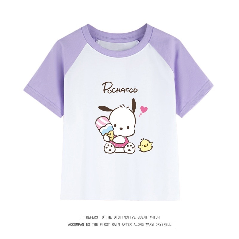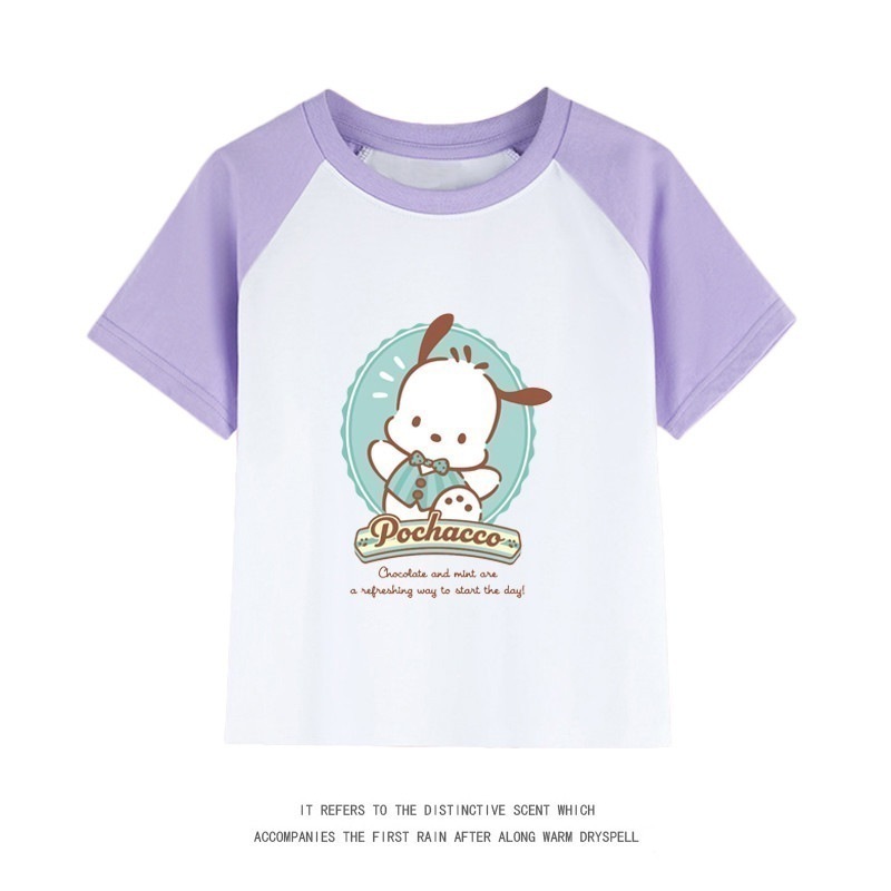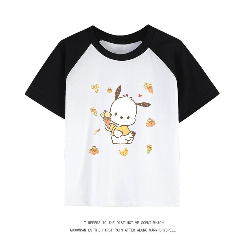 親子服ポチャッコ半袖tシャツレディースパチャドッグ半袖男の子女の子服純綿子供用中大シャツ丸首トップス女の子ファッションTシャツブラウス