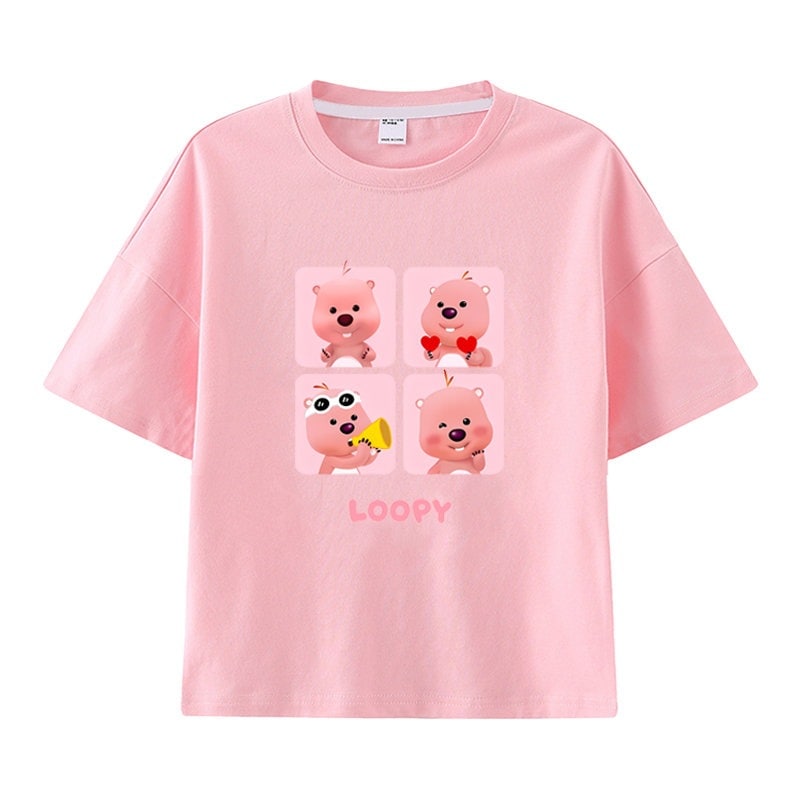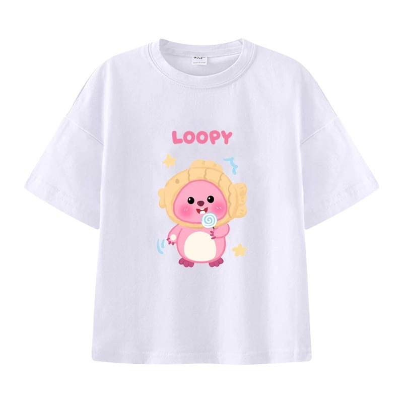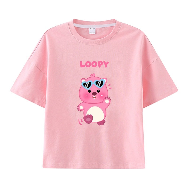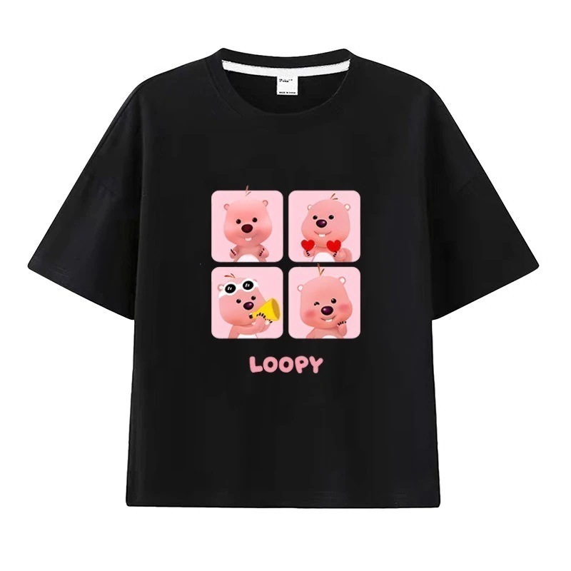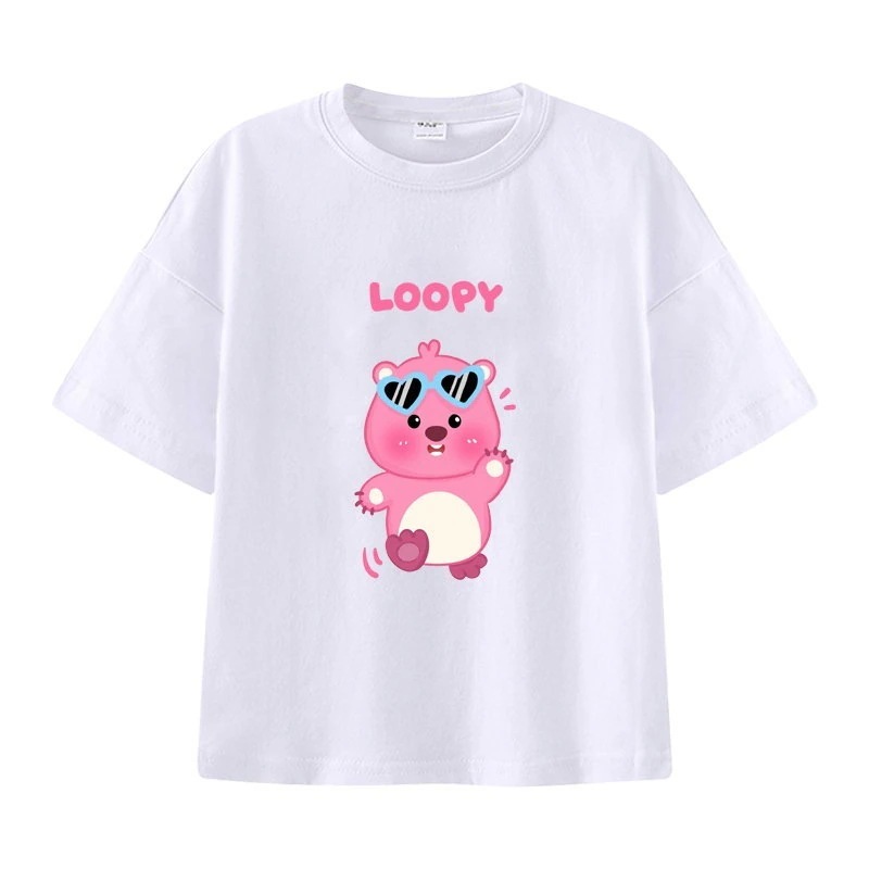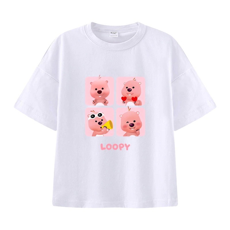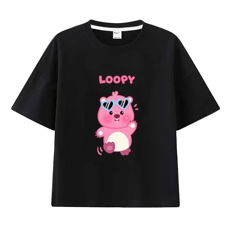 親子服loopy半袖tシャツレディースルビー夏純綿半袖シャツおしゃれで可愛い中大児向け半袖服リトルビーバー女の子ファッションTシャツブラウス
