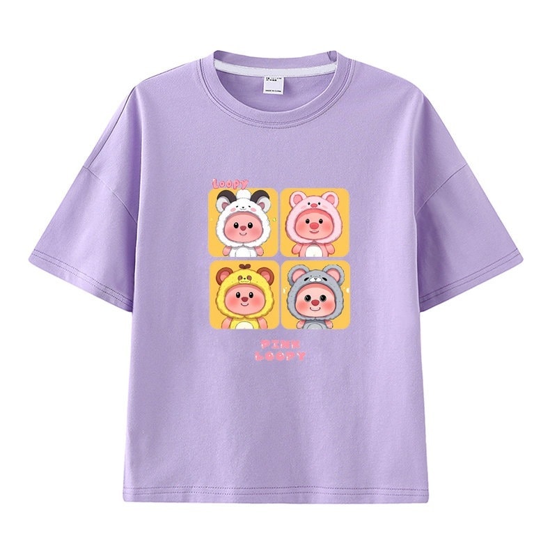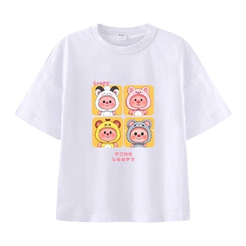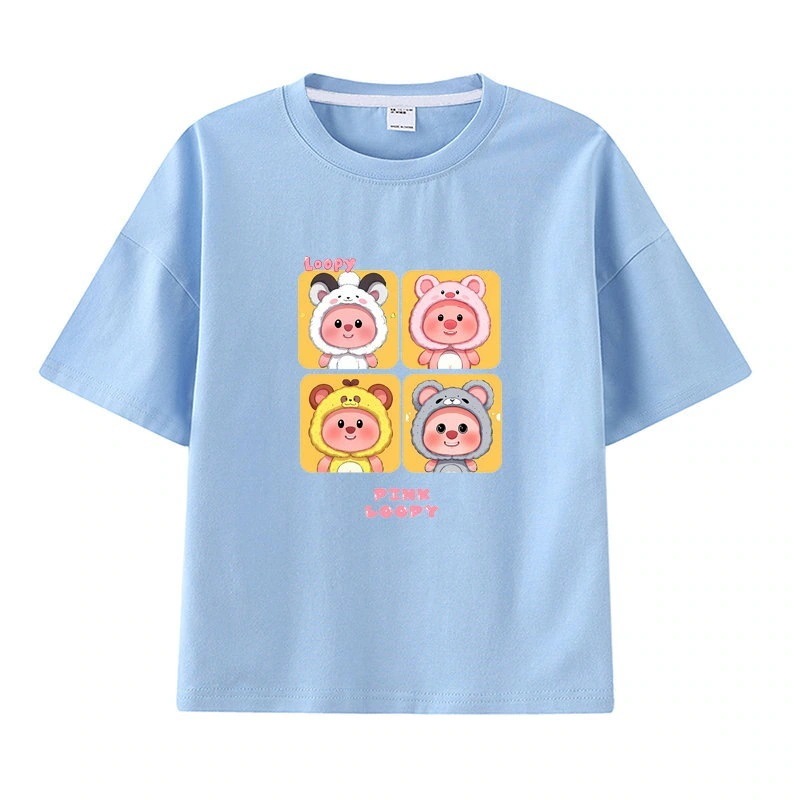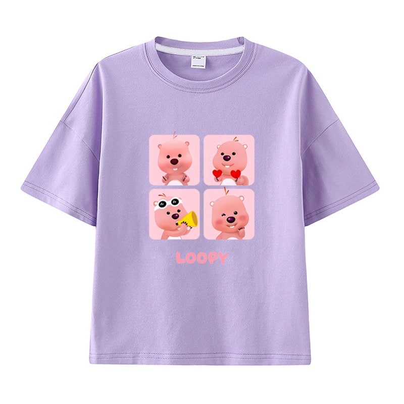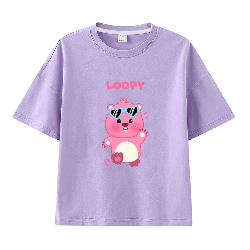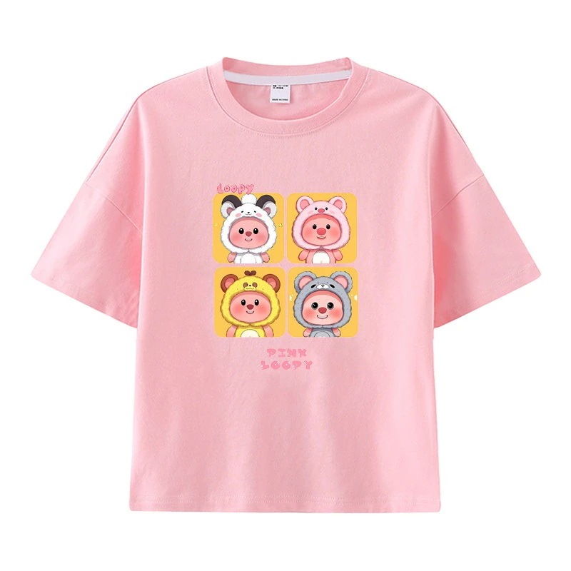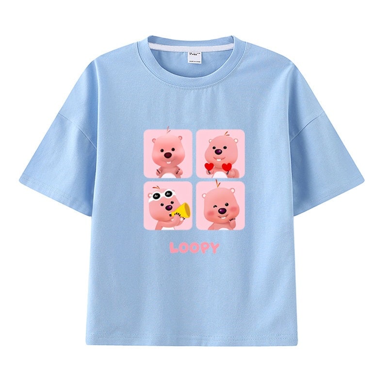 親子服loopy半袖tシャツレディースルビー夏純綿半袖シャツおしゃれで可愛い中大児向け半袖服リトルビーバー女の子ファッションTシャツブラウス