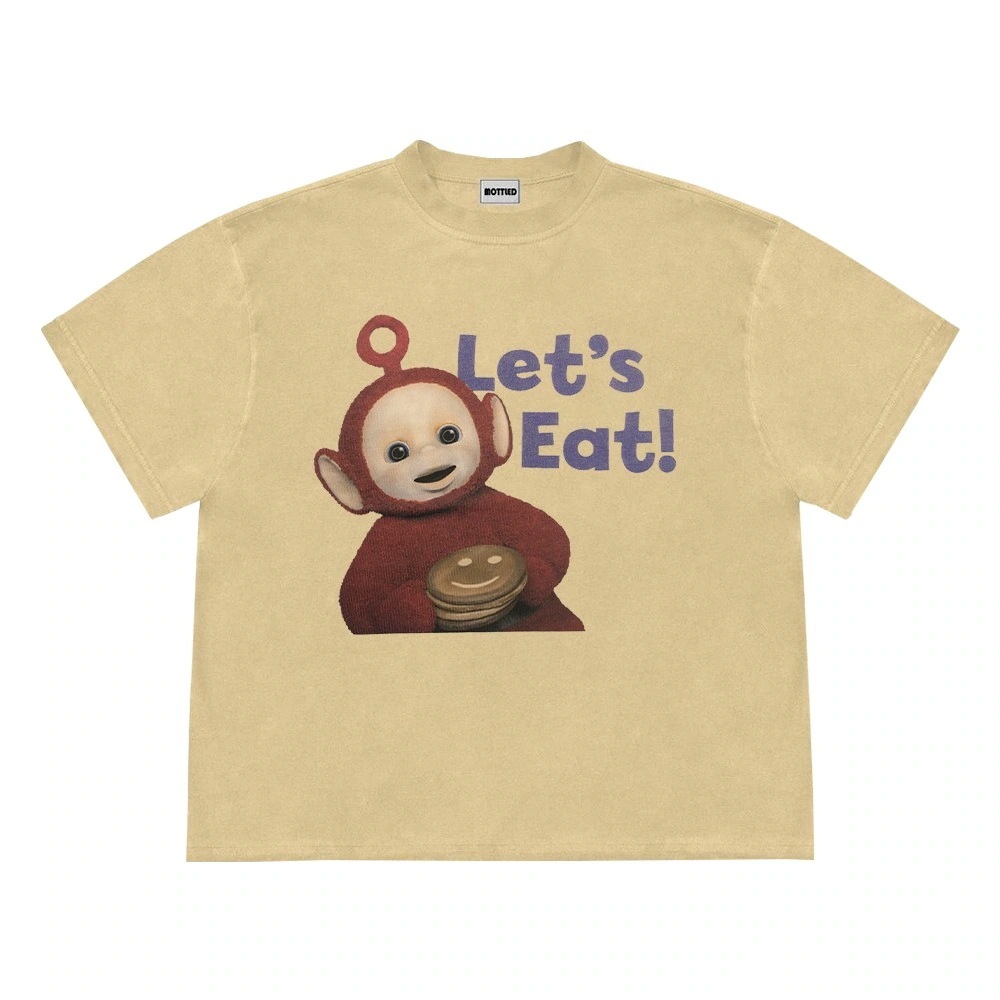 親子服テレタビーズ半袖tシャツレディース夏らしいテレタビーズプリント親子半袖tシャツゆったり中大子供用半袖t女の子ファッションTシャツブラウス