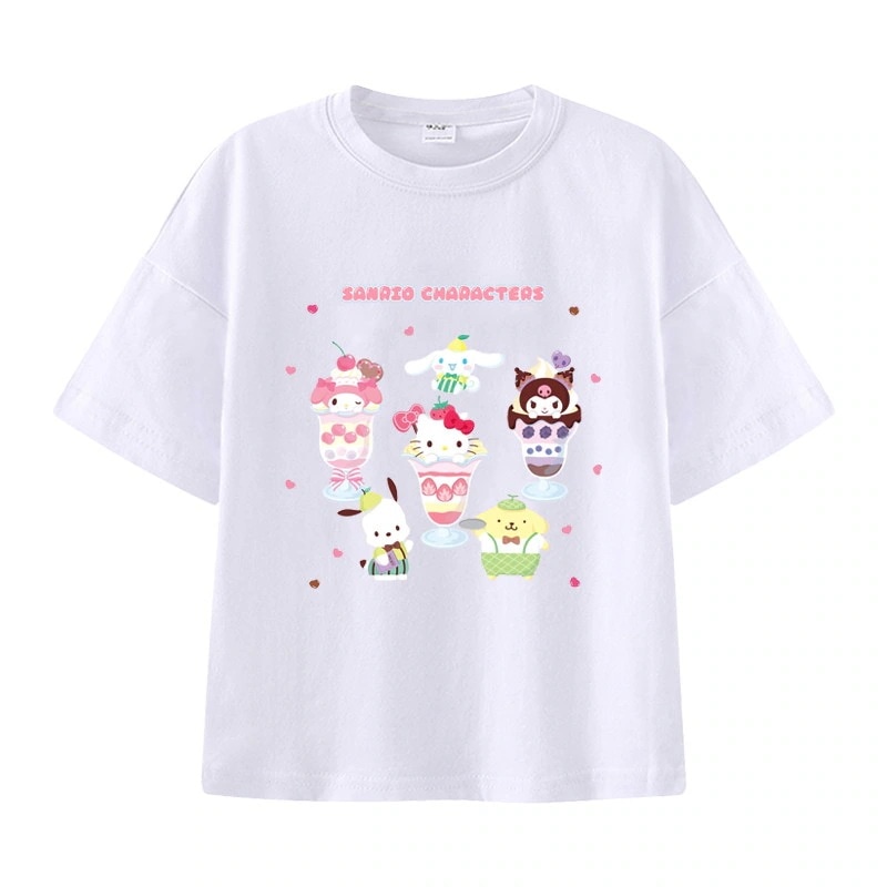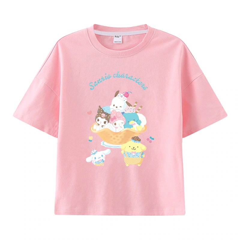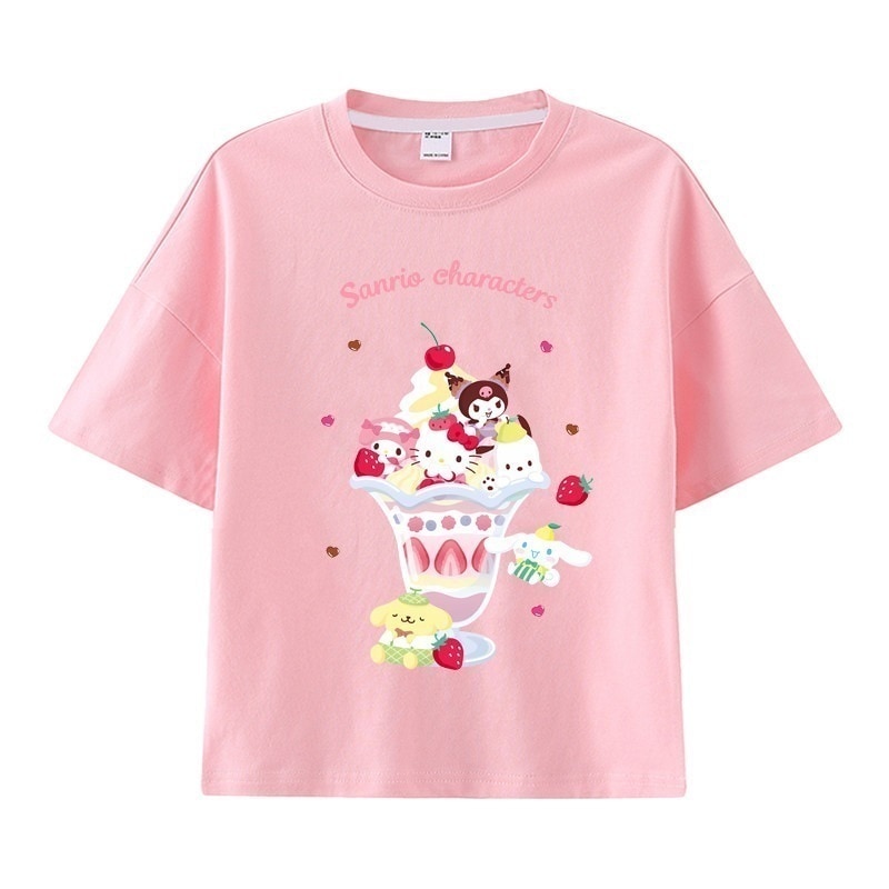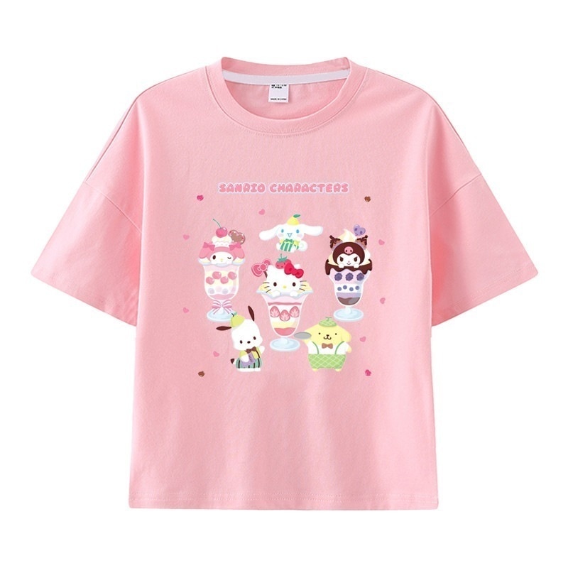 親子服ハローキティ半袖tシャツレディースシャツ純綿sサイズ半袖服中大子供夏服 ハローキティトップス女の子ファッションTシャツブラウス