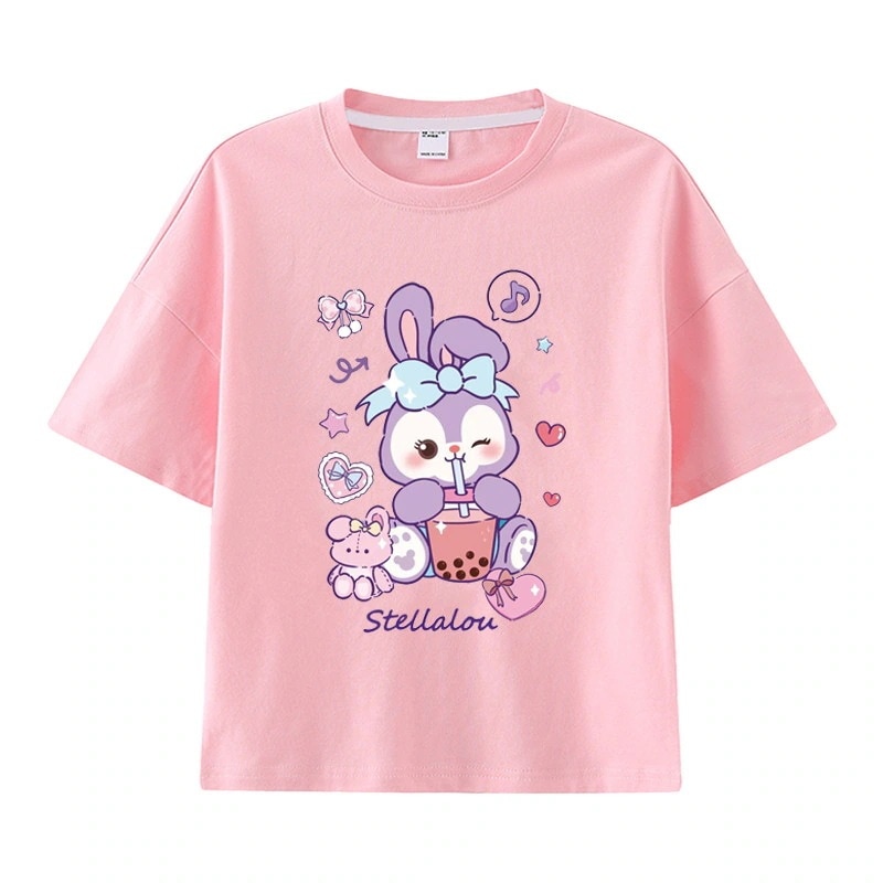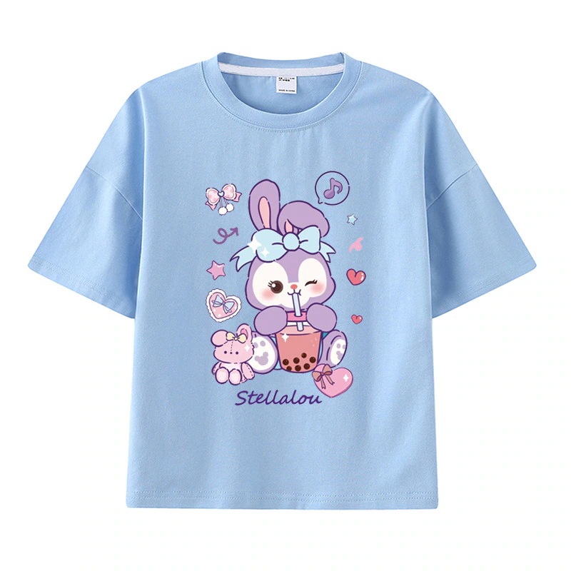 ダンシングウサギ 親子服リーナベル半袖tシャツレディース星柄半袖シャツ 小中大子供服 おしゃれ純綿女の子ファッションTシャツブラウス