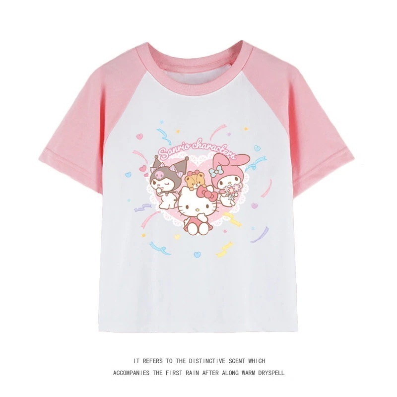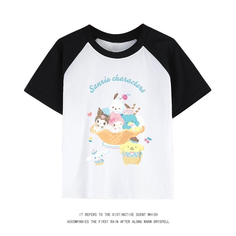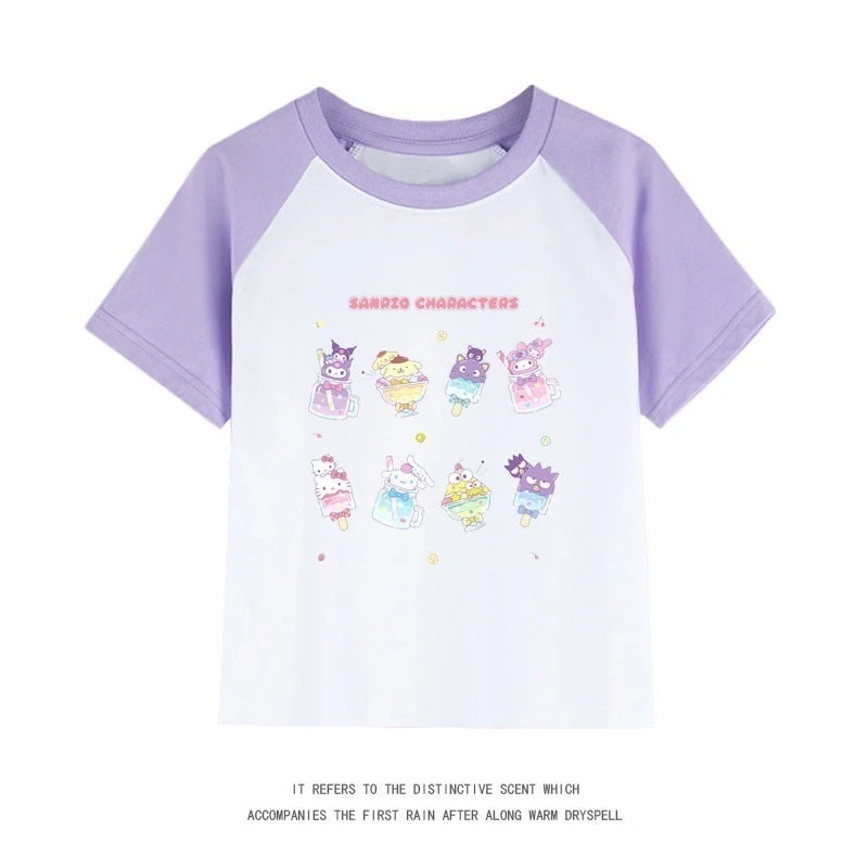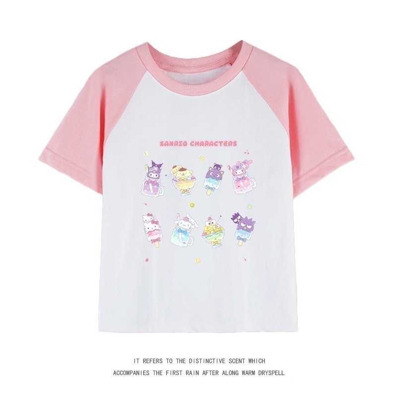 親子服マイ 半袖tシャツレディース小中大子供用半袖シャツ ーキュロミカラーブロックトップ女の子ファッションTシャツブラウス