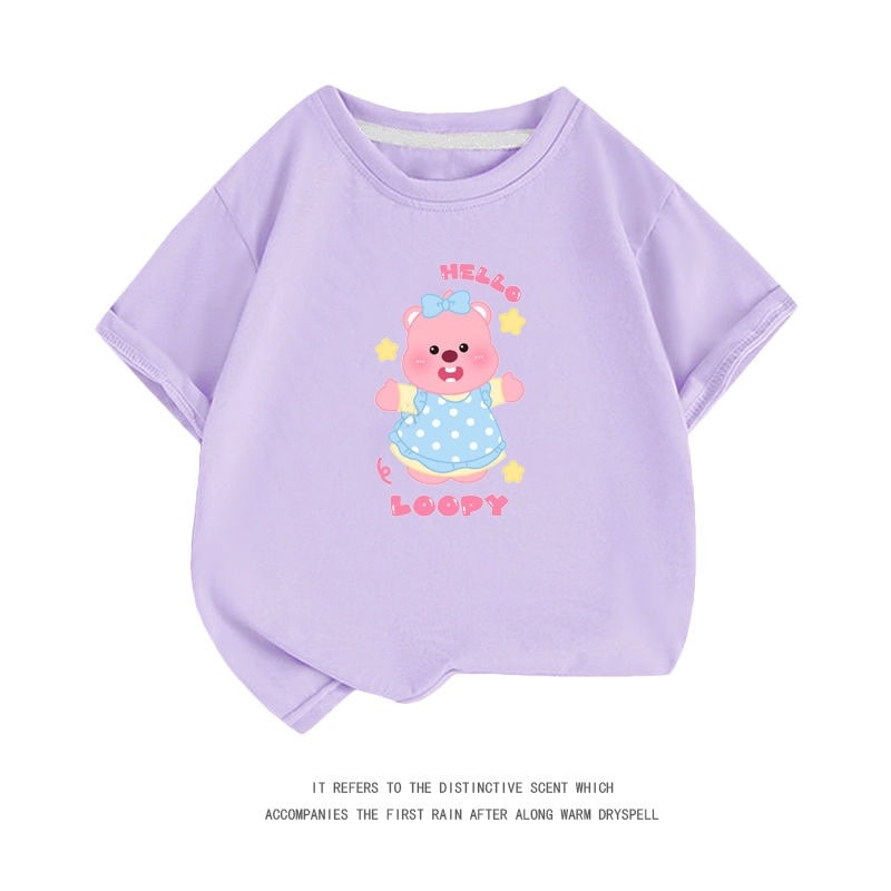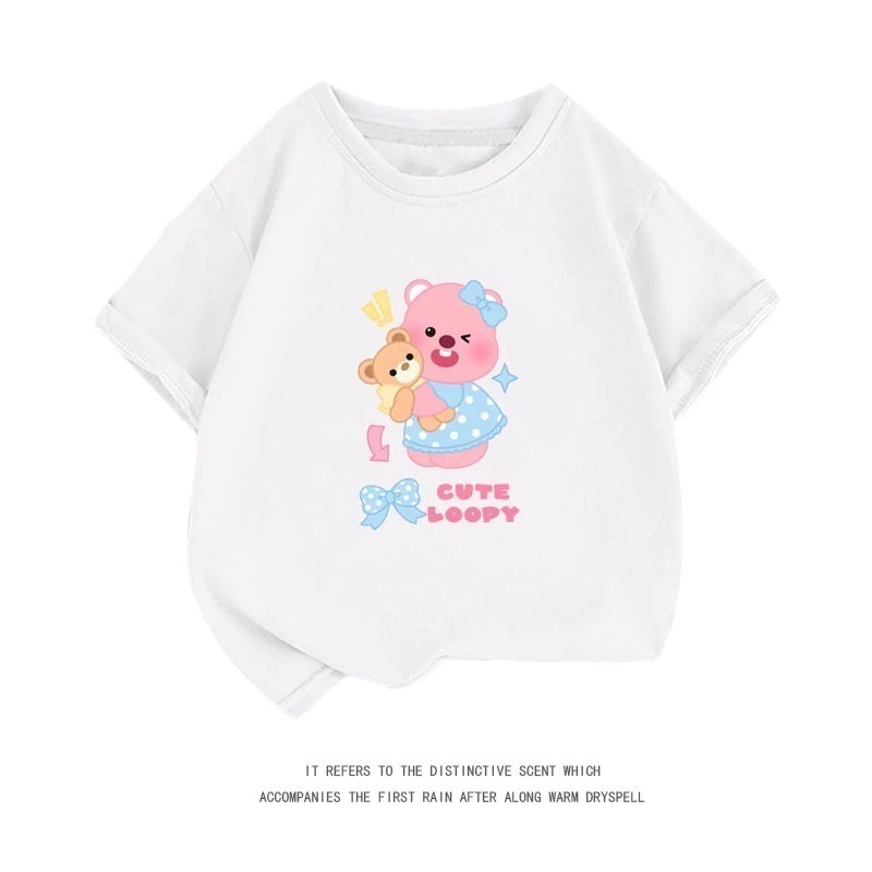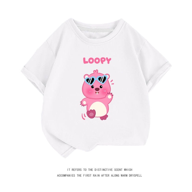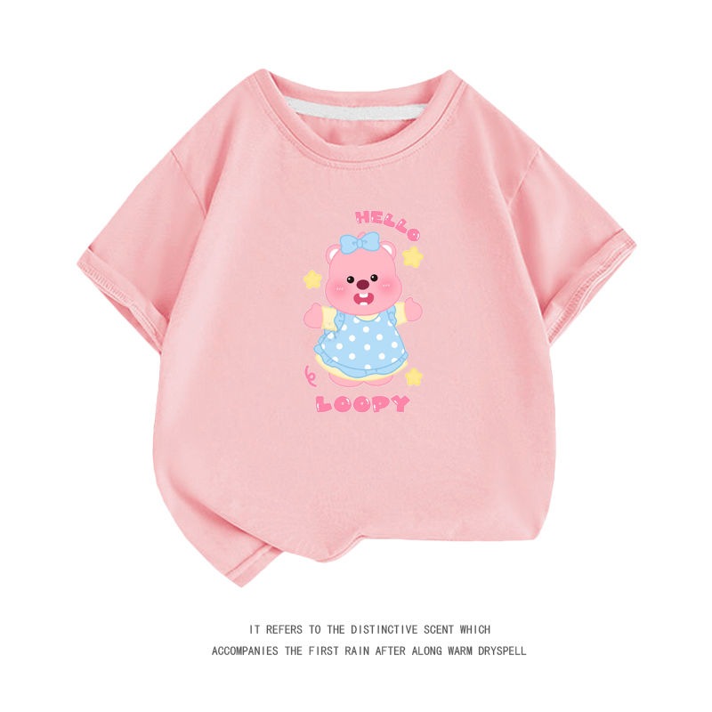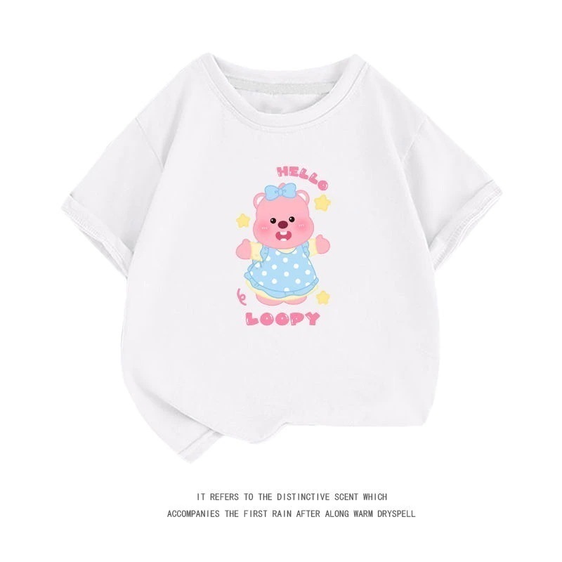 親子服loopy半袖tシャツレディース半袖シャツ夏綿中大男児五分袖服リトルビーバールビー女の子ファッションTシャツブラウス