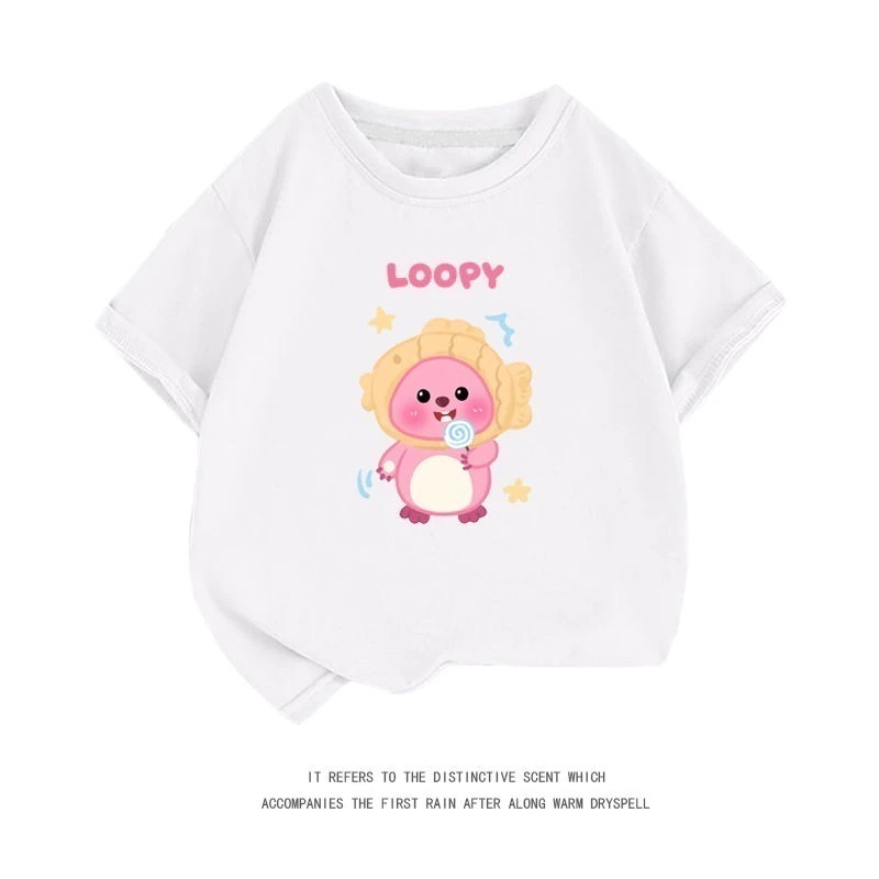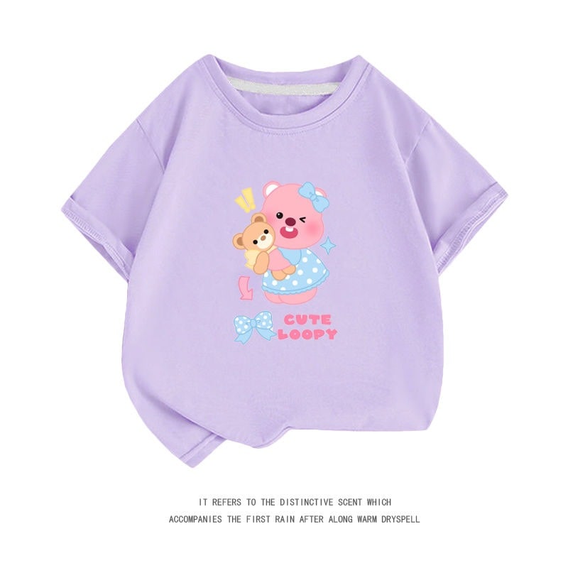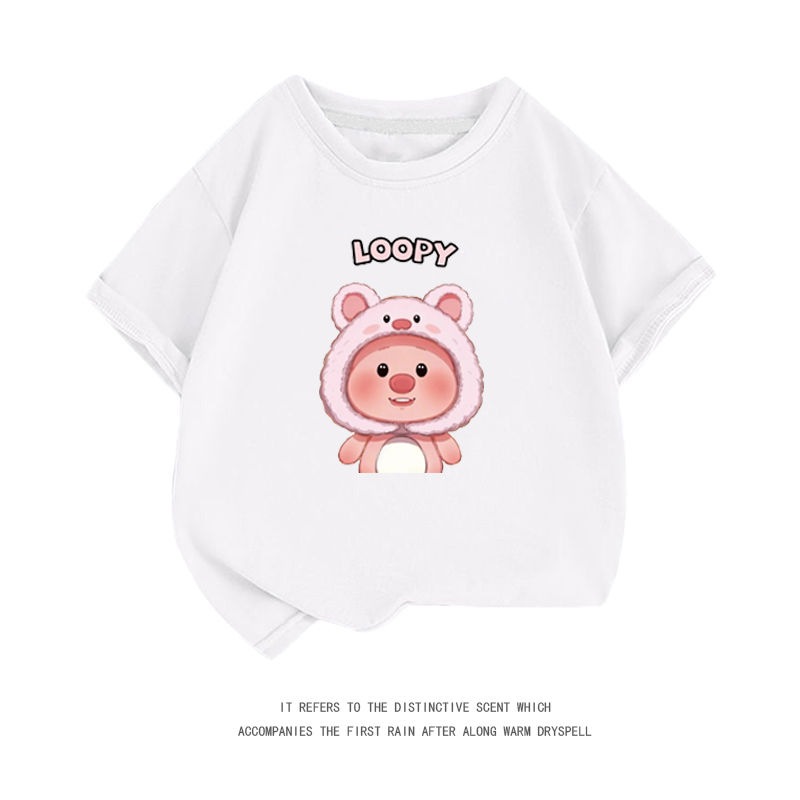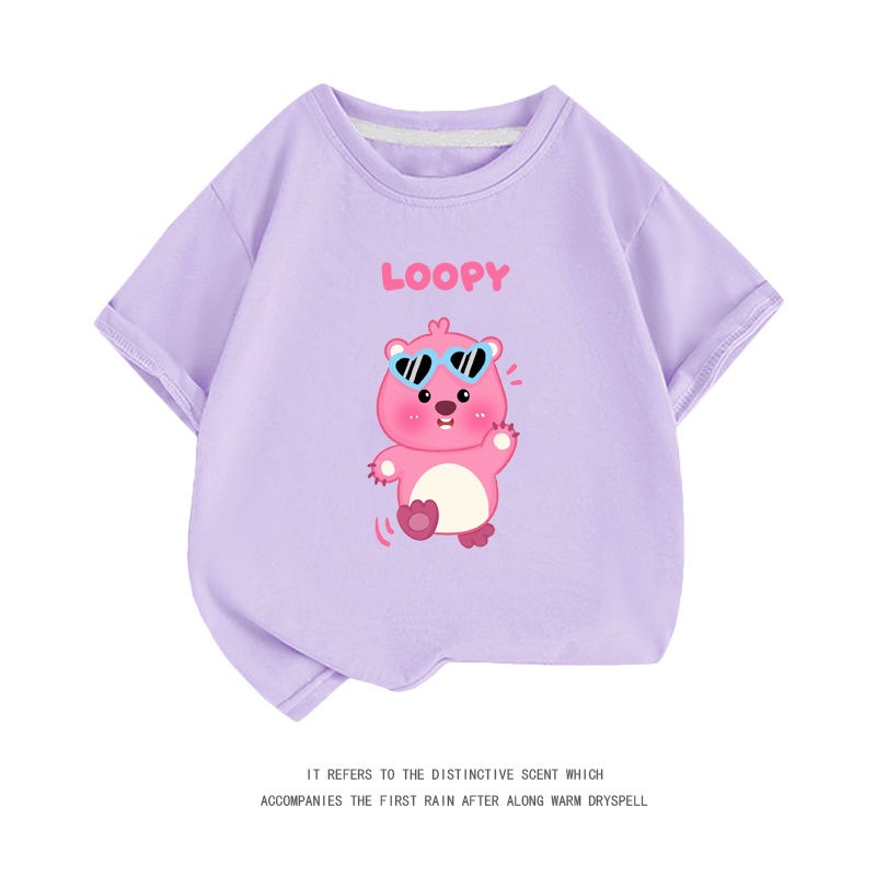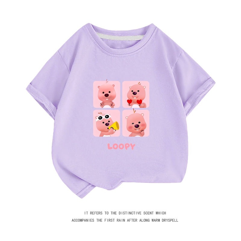 親子服loopy半袖tシャツレディース半袖シャツ夏綿中大男児五分袖服リトルビーバールビー女の子ファッションTシャツブラウス
