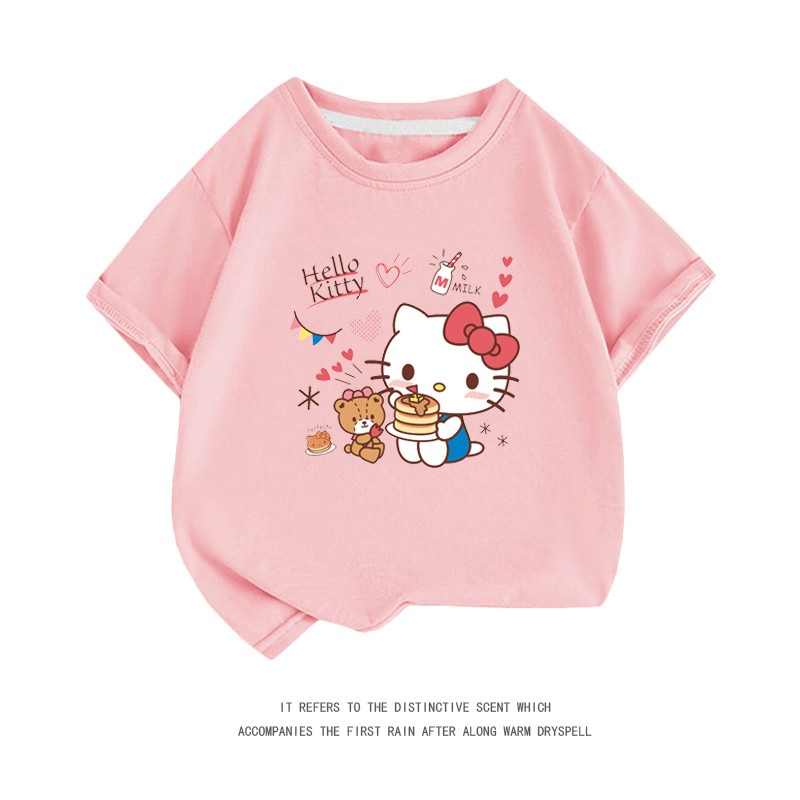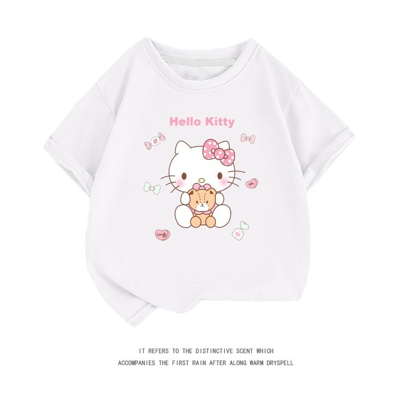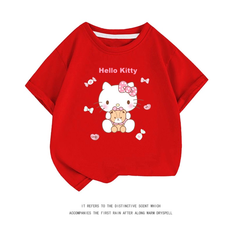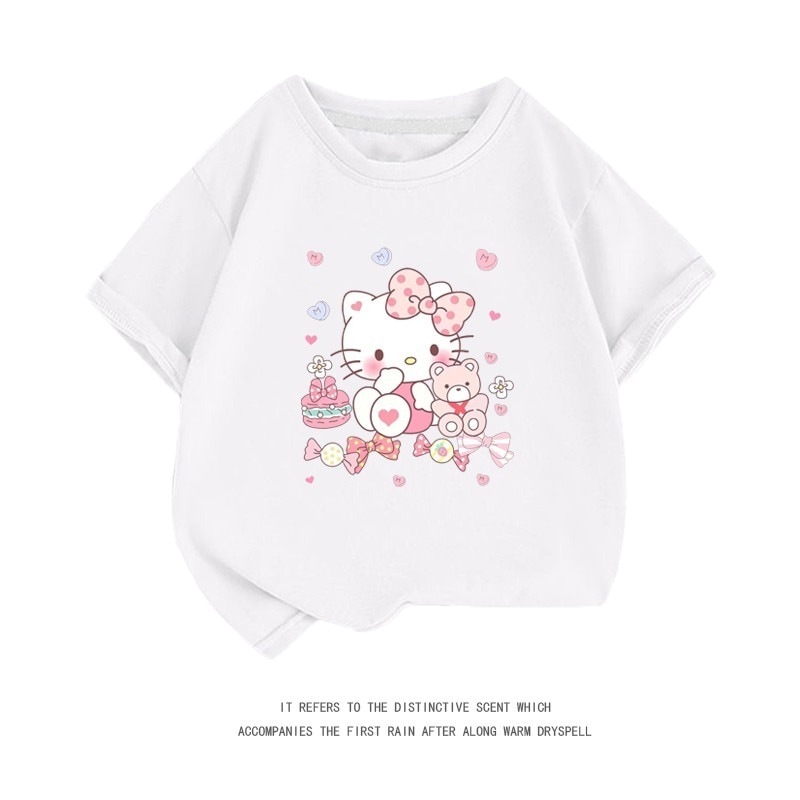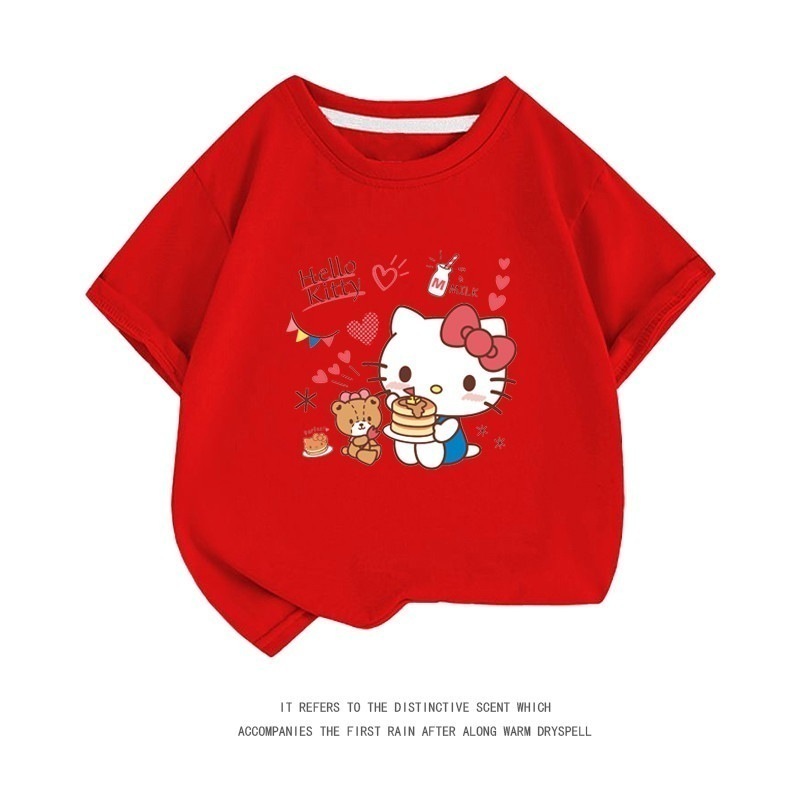 小中大子供用半袖コットンクルーネックシャツ服 親子服ハローキティ半袖tシャツレディースハローキティ女の子ファッションTシャツブラウス