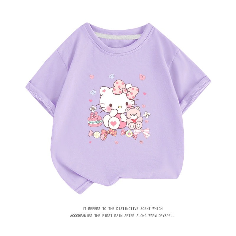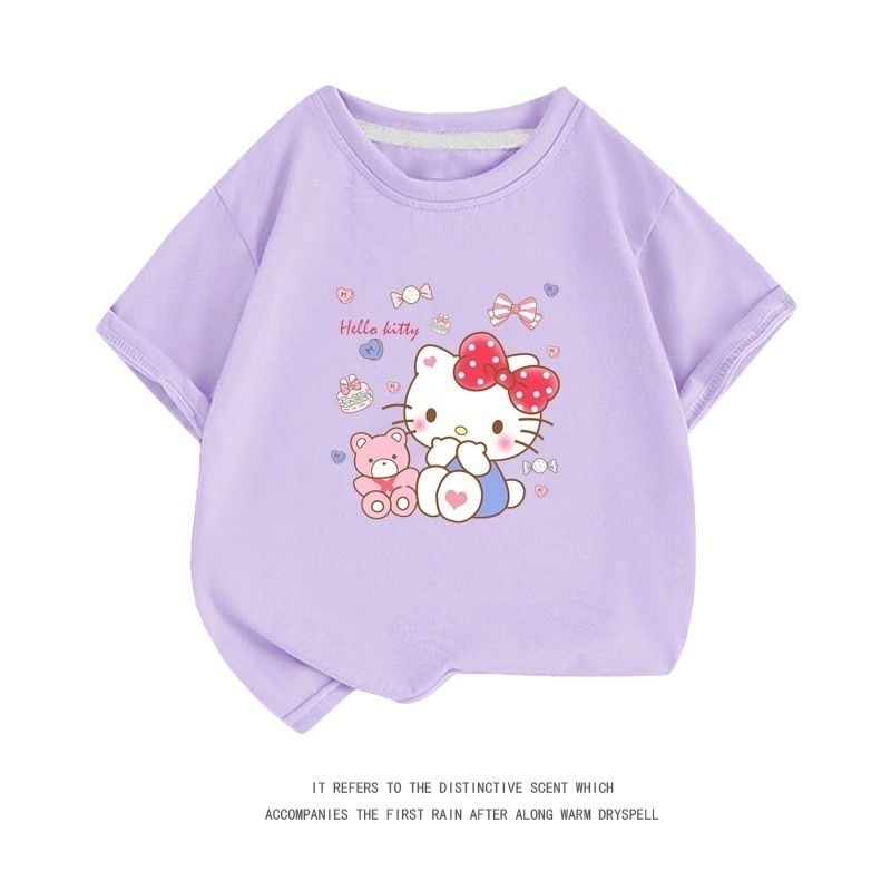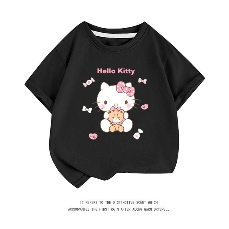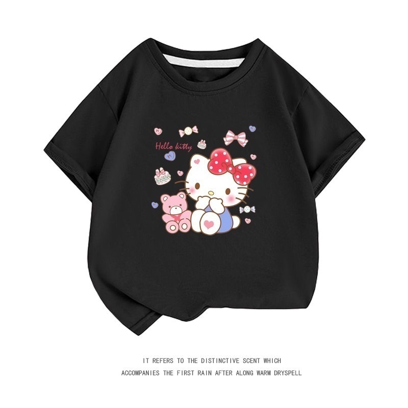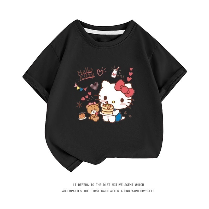 小中大子供用半袖コットンクルーネックシャツ服 親子服ハローキティ半袖tシャツレディースハローキティ女の子ファッションTシャツブラウス