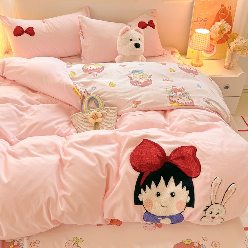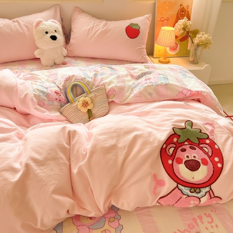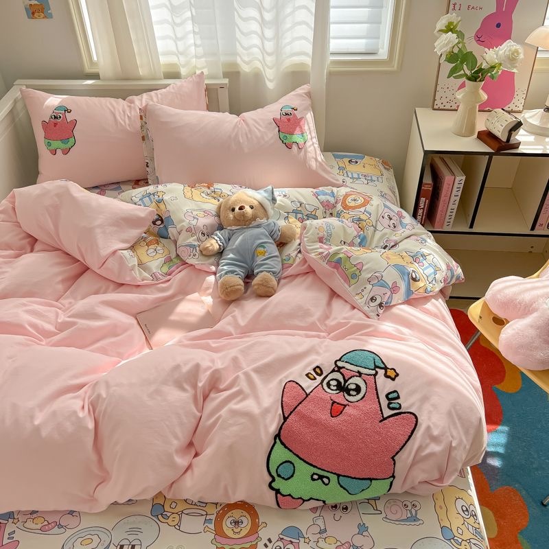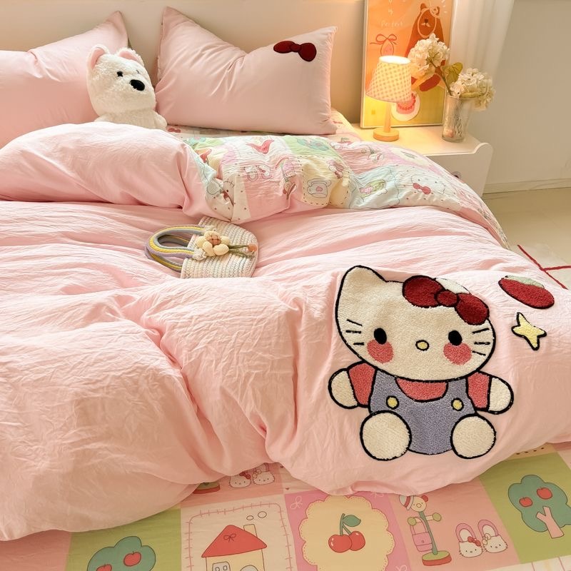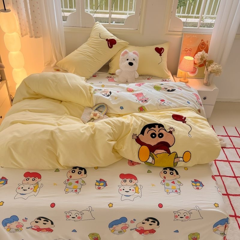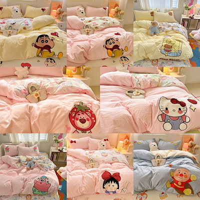 【メガ割】2025かわいい タオル刺繍 綿寝具3/4点セット サンリオ クレヨンしんちゃん ハローキティスポンジの赤ちゃん スターを立てる 掛け布団カバー 枕カバー2点 ベットシーツ 布団セット