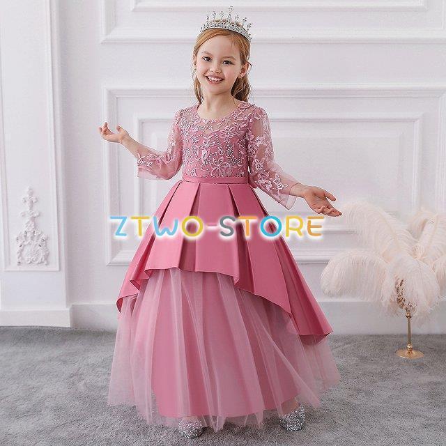 子供ドレス 女の子ドレス 子供フォーマルドレス  フラワガール ホワイト ゴールド ワイン グ クピンク 女の子ロングドレス ノ発