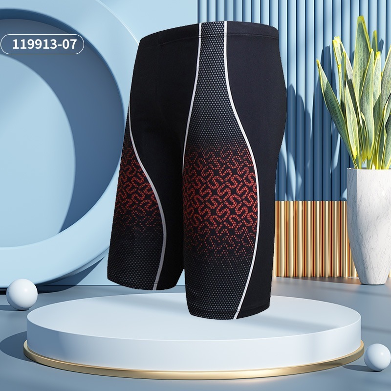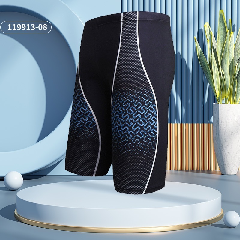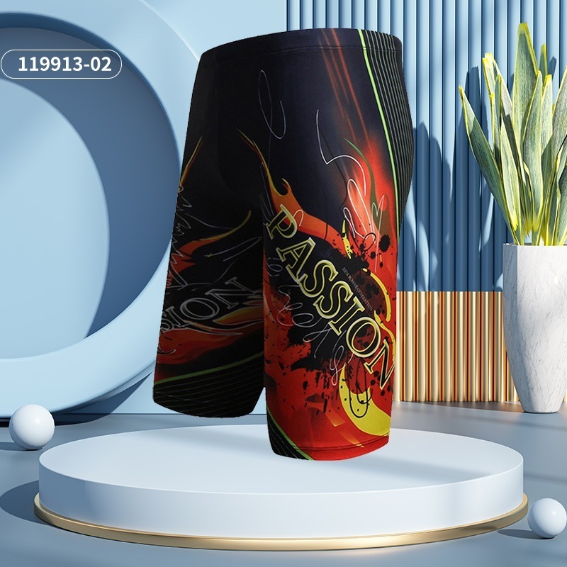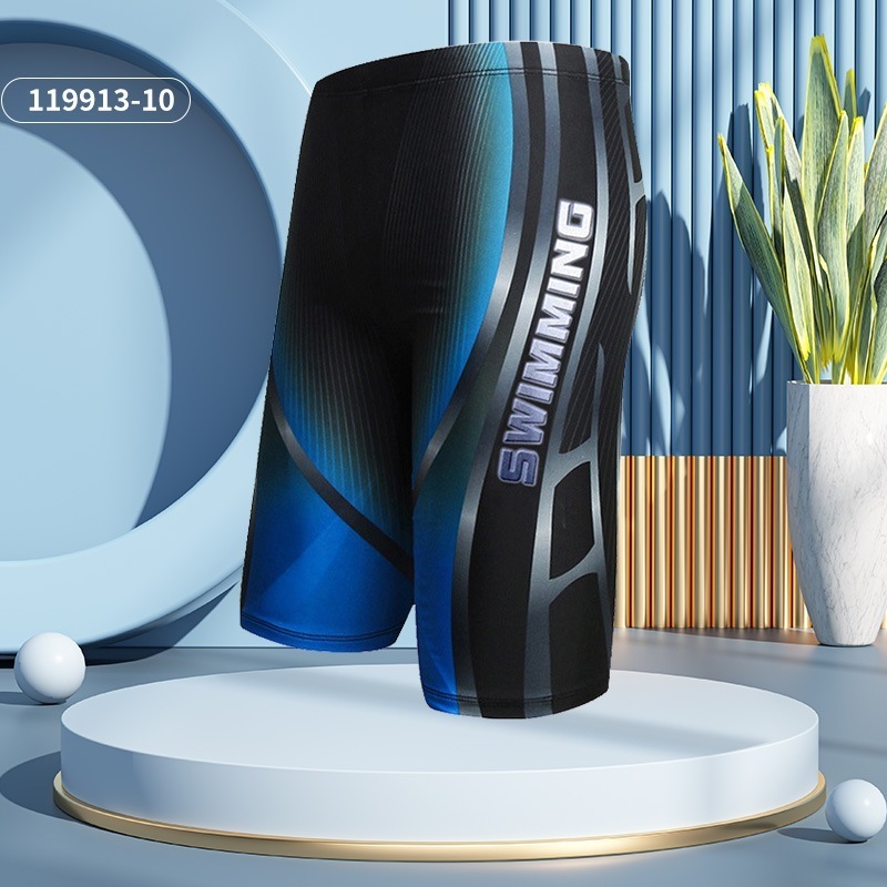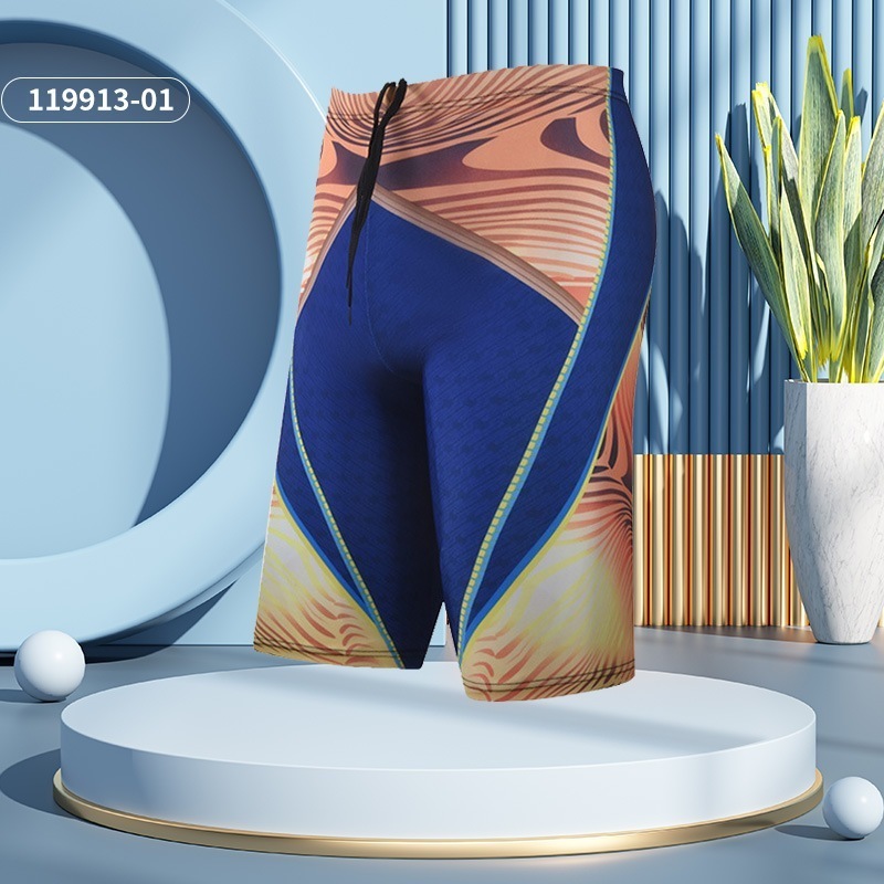 5ポイントの5ポイントアンチエンバラスを持つ男性向けの卸売水泳トランクデジタル印刷されたフラットアングル水着長い片足速度乾燥プロフェッショナルスイミングトランク