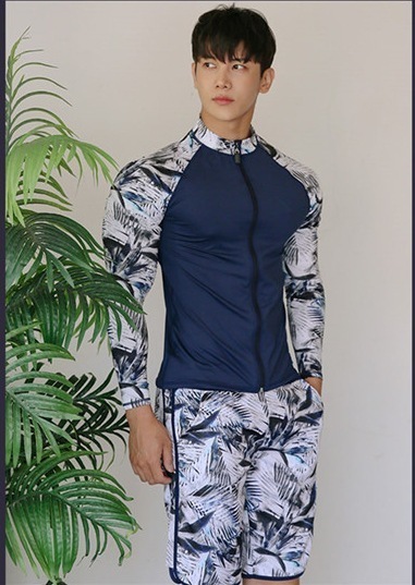 2025新しい韓国のスリムカラーブロッキングスプリックスプリック保守的な日焼け防止水着スーツマン