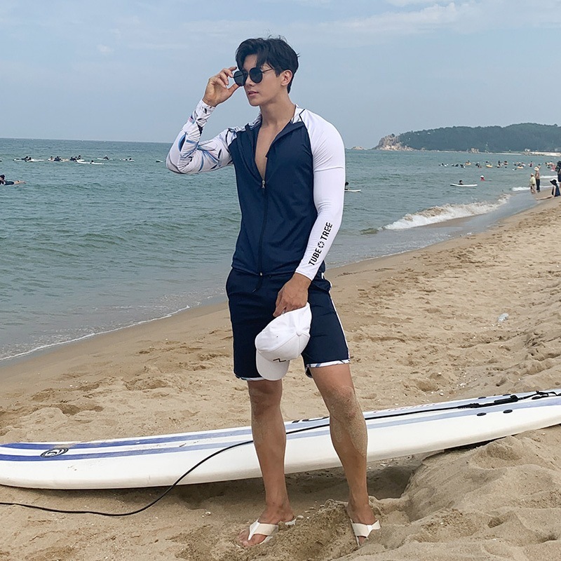 2025新しい韓国のスリム色対照的な色スプリット長袖保守的な日焼け止めスーツマン
