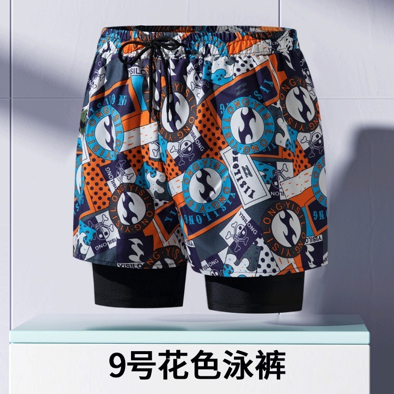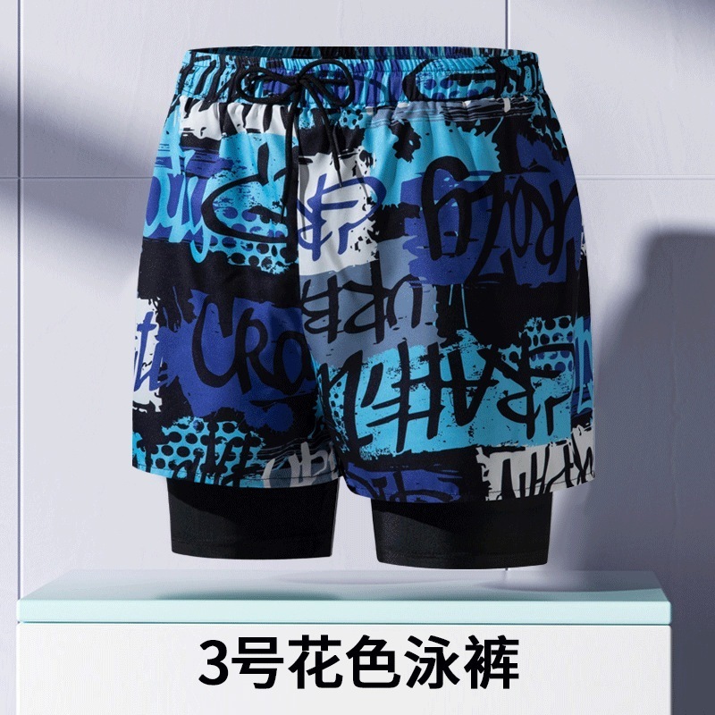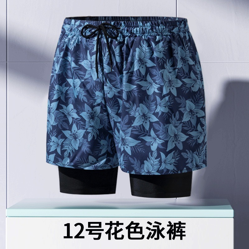 男子水泳トランク新しい二重層反輸入プロフェッショナルフラットアングルクイックドライスイミングトランクファッショナブルなアダルトルーズラージサイズビーチパンツ