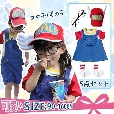 【2点購入で1OO円オフ】[即納]コスチューム パーティー コスム キッズ 子供5点セット コスプレ衣装 アラレちゃん dr.スランプ なりきり
