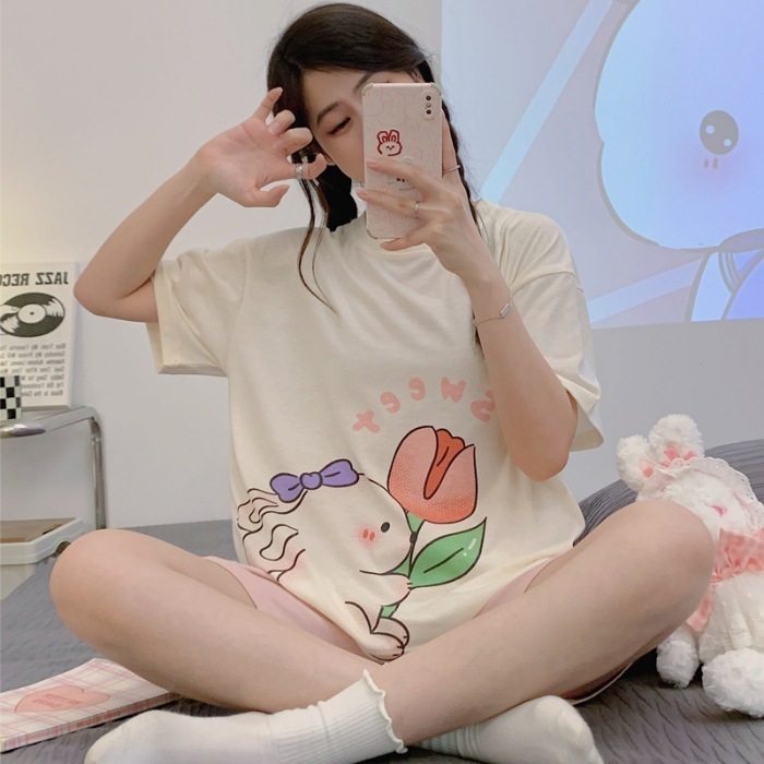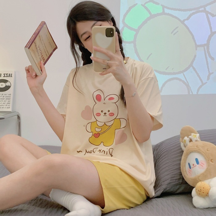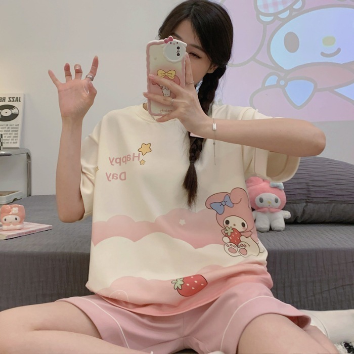 【2点購入で1OO円オフ】[即納]パジャマ サンリオパジャマ女性夏綿新半袖半ズボン薄手ゆるいins学生は家庭服セットを着ることができる