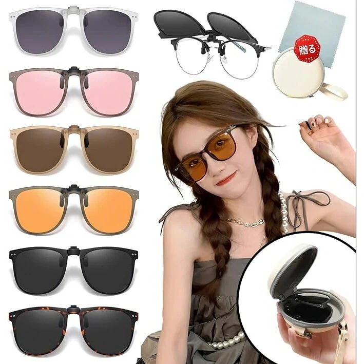 クリップオン サングラス 偏光 UVカット 折りたたみサングラス 偏光サングラス 眼鏡の上から 跳ね上げ式 オーバーサングラス 運転用 メンズ スポーツサングラス レディース