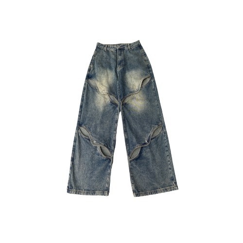 【2枚購入で2OO円OFF!!】 [即納]デニムレディースファッション ストレート ダメージ加工 ワイドパンツ レディース デニムパンツ