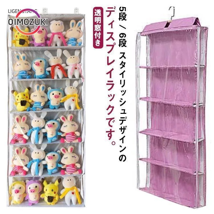 吊り下げ収納 コレクションケース ディスプレイ ぬいぐるみウォールポケット 6段 ぬいぐるみ 小物 5段収納ケース 壁掛け 収納ボックス コレクショ