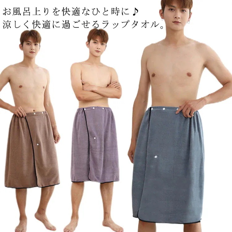 [IRC]着脱簡単! ラップタオル 巻きタオル メンズ バスローブ バスタオル 大人用 マイクロファイバー 風呂上り 70cm ふわふわ お風呂 プール スイミング 男性 海水浴 お着替えタオル 軽量