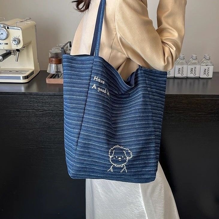 【両面使用可能】カートゥーンドッグオールインワンデニムリバーシブル帆布バッグ2025新作刺繍トートバッグカジュアル大容量学生ショルダーバッグ誕生日プレゼント