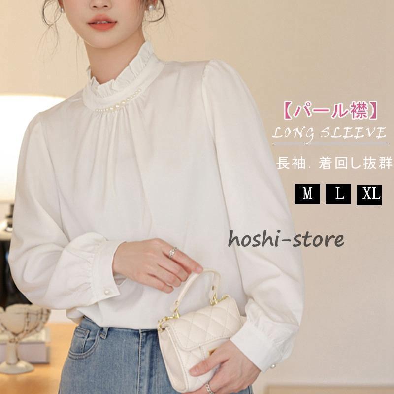 緊急SALE!2枚購入で2OO円OFF![急速出荷]ハイネックブラウス ギャザー 長袖 ハイネック シャツ トップス フォーマル パール レディース ブラウス 新作パール付き