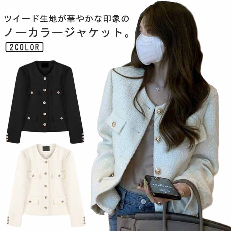 ツイードジャケット レディース 春 秋 ジャケット ノーカラージャケット 入学式 卒業式 アウター 長袖 きれいめ オフィスカジュアル 通勤 フォーマル セレモニー ママスーツ 卒園式 入園式 結婚式