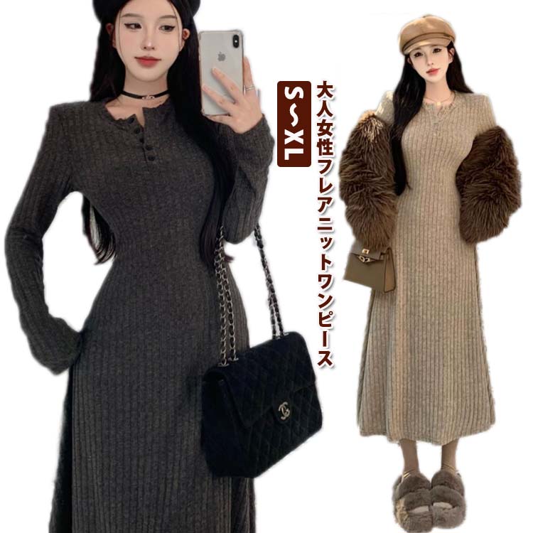 フレア ニットワンピース マキシワンピース ロング丈 マキシニットワンピース 秋冬 インナーワンピース ロングワンピース スタイル インナーウエア レディース 無地 シンプル カジュアル おしゃれ フ
