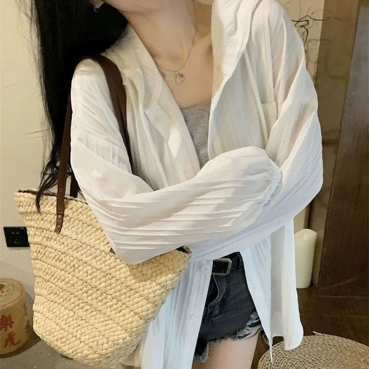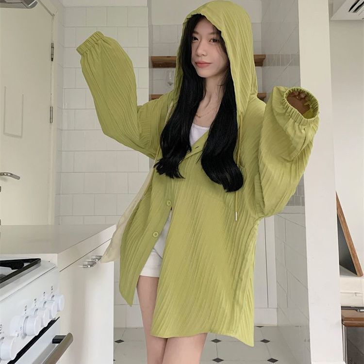白い長袖日焼け止めシャツ女性夏の新作カジュアル連帽クーラーシャツコート