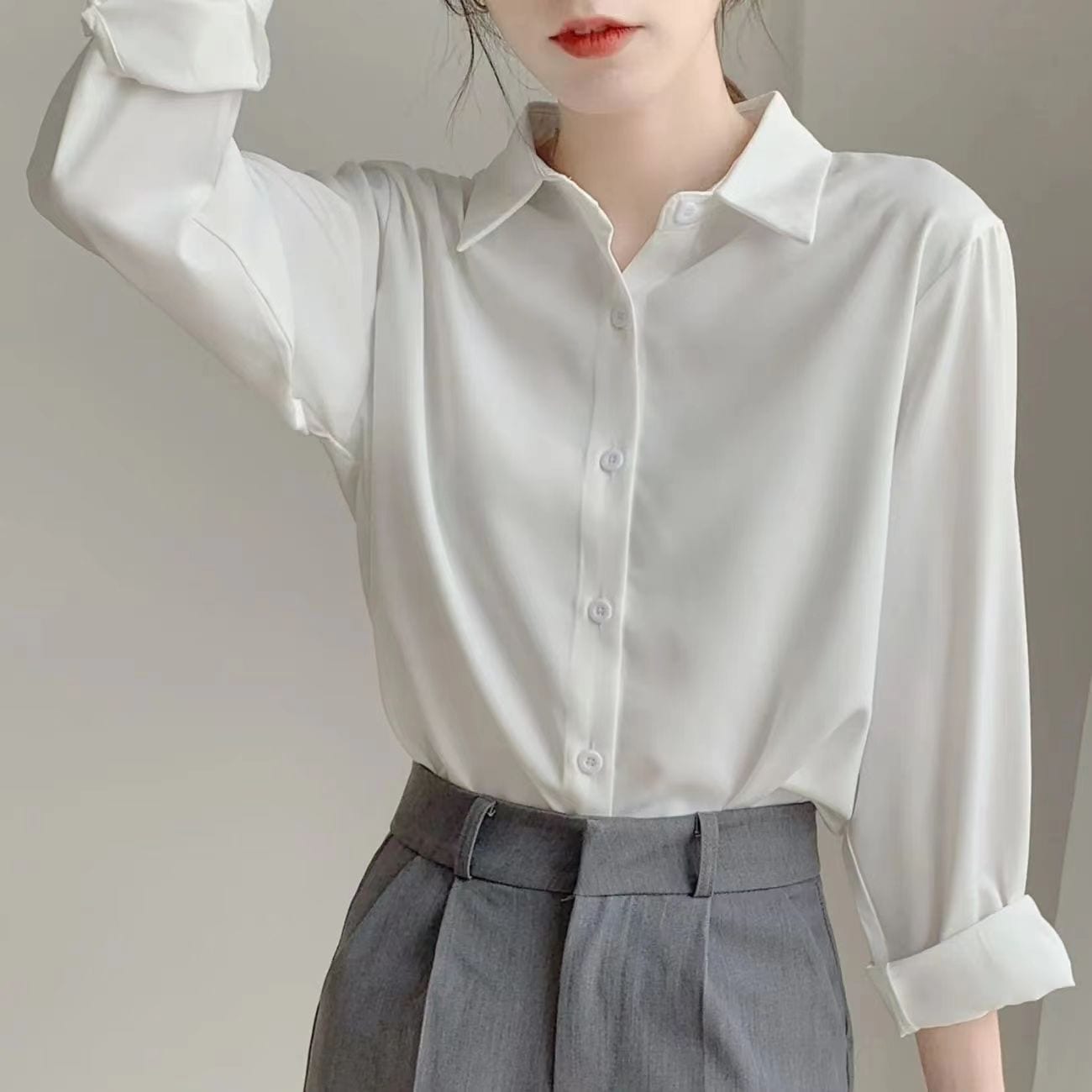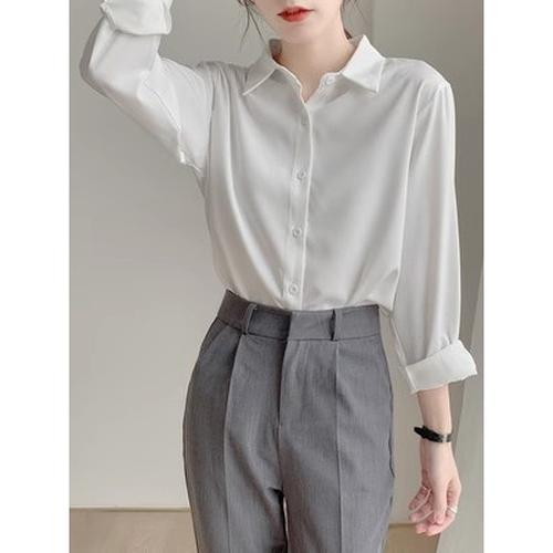 常相白シャツ女長袖面接職業正装高級感春秋新作シフォンシャツ女