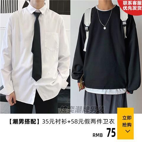白シャツ長袖スーツインナー男シャツごろつきかっこいい下着春秋正装おしゃれ男着コーディネートスーツ