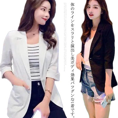 テーラードジャケット レディース 七分袖 サマージャケット ジャケット 薄手 春 夏 秋 アウター シンプル 通勤服 OL オフィス カジュアル 上品 大きサイズ ゆったり キレイめ 送料無料 小さい