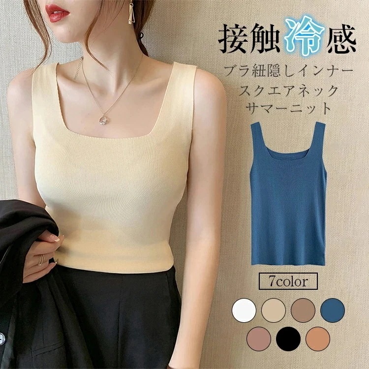 接触冷感 ブラ紐隠しインナー ク ク キャミソール インナー レディース 夏 スクエアネツク サマーニットク 脇汗 抗菌防臭 汗取りインナー 脇汗 定番 重ね着 伸