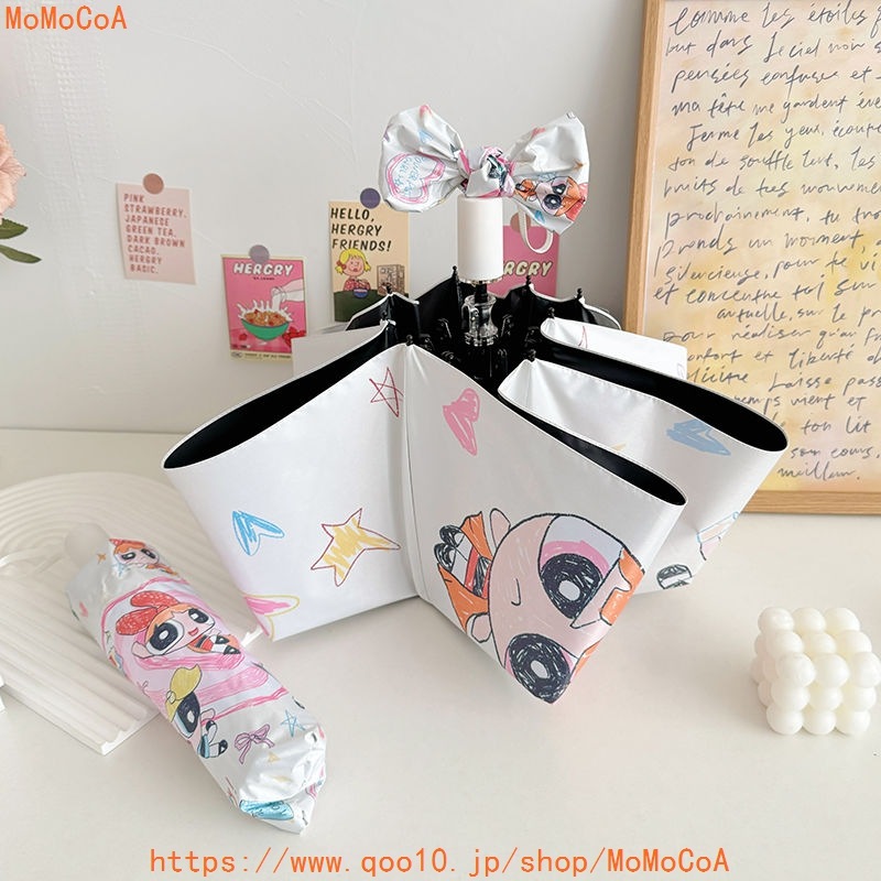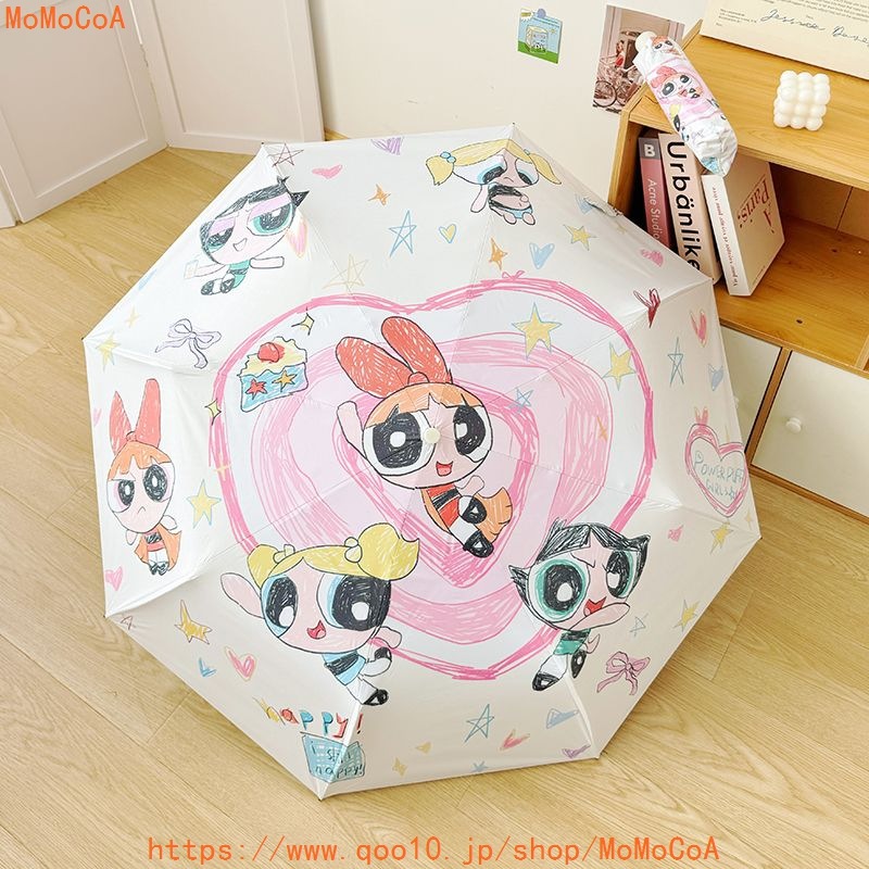 パワーパフガールズ 傘 日傘 晴雨兼用 UVカット 紫外線遮断 三段式 日傘 折りたたみ 雑貨 日傘 完全遮光 軽量 日傘 折りたたみ 雨傘 キャラクター