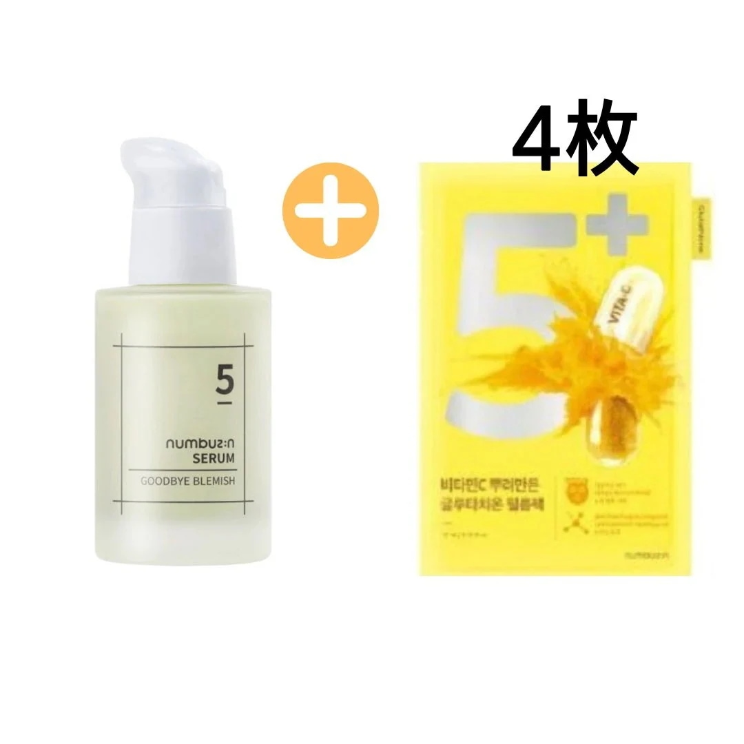 ナンバーズイン5番 朝晩ビタミン 75% セラム 50ml+5番 白玉 グルタチオンC シートマスク 4枚