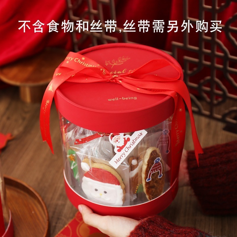 (新品特典)新年のクッキースナックハグバケット透明クリスマスギフトボックスハンドバッグスノーフレークヌガー包装ボックス
