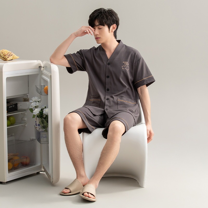 夏半袖 大人気 上下セット2点セッパジャマ 夏用 涼しい 通気性 パジャマペア男性cmn37