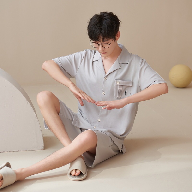 夏半袖 大人気 上下セット2点セッパジャマ 夏用 涼しい 通気性 パジャマペア男性cmn46