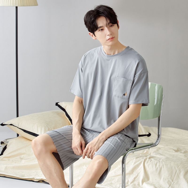 夏半袖 大人気 上下セット2点セッパジャマ 夏用 涼しい 通気性 パジャマペア男性cmn22