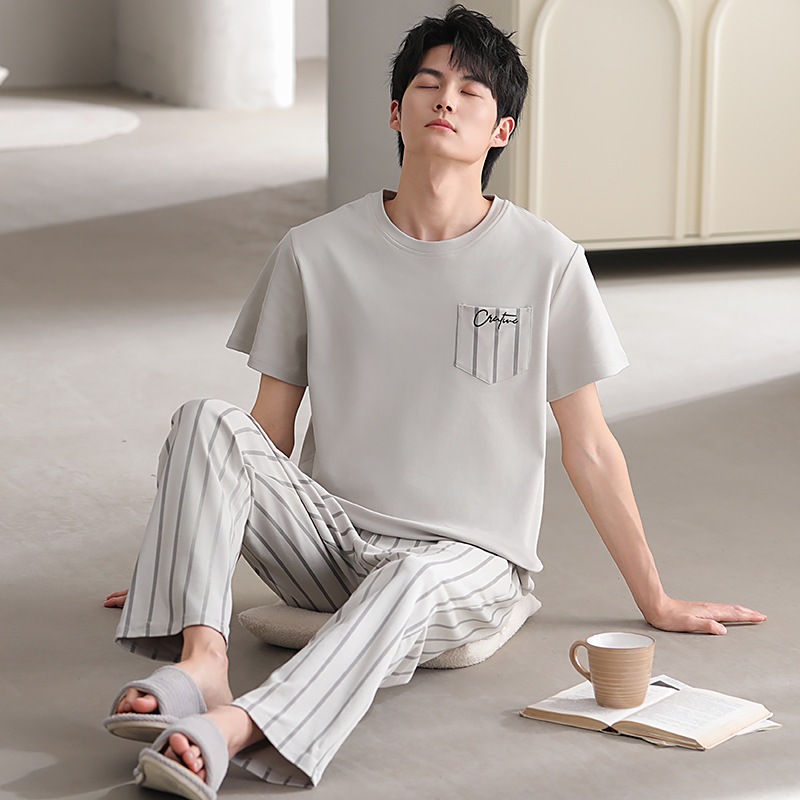 夏半袖 大人気 上下セット2点セッパジャマ 夏用 涼しい 通気性 パジャマペア男性cmn23