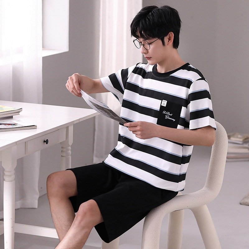 夏半袖 大人気 上下セット2点セッパジャマ 夏用 涼しい 通気性 パジャマペア男性cmn57