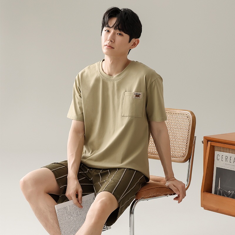 夏半袖 大人気 上下セット2点セッパジャマ 夏用 涼しい 通気性 パジャマペア男性cmn31