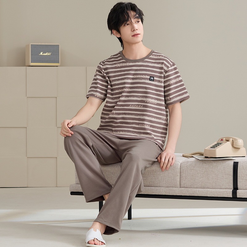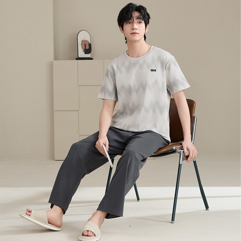 夏半袖 大人気 上下セット2点セッパジャマ 夏用 涼しい 通気性 パジャマペア男性cmn42